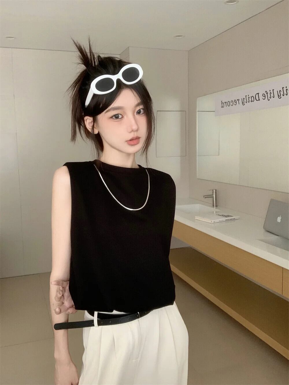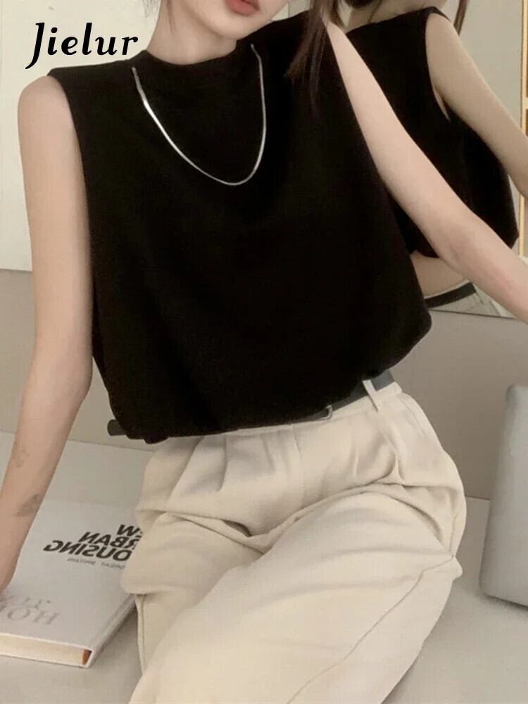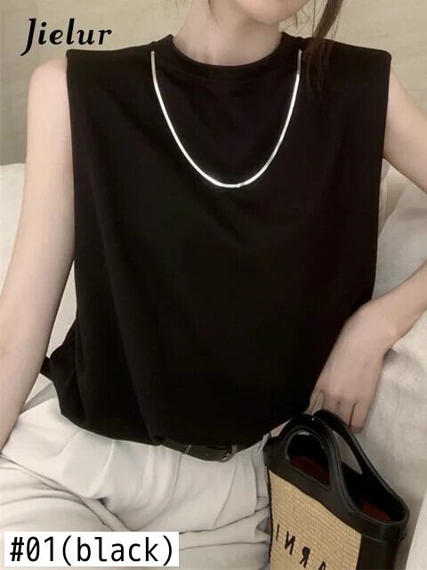 送料無料 Jielur 夏ソリッドカラースリムレディースタンクスウィートタンク女性アプリコットブラックベーシックノースリーブトップ 大人ガーリー キュート カジュアル サマー 夏物 AE12188787877182557491