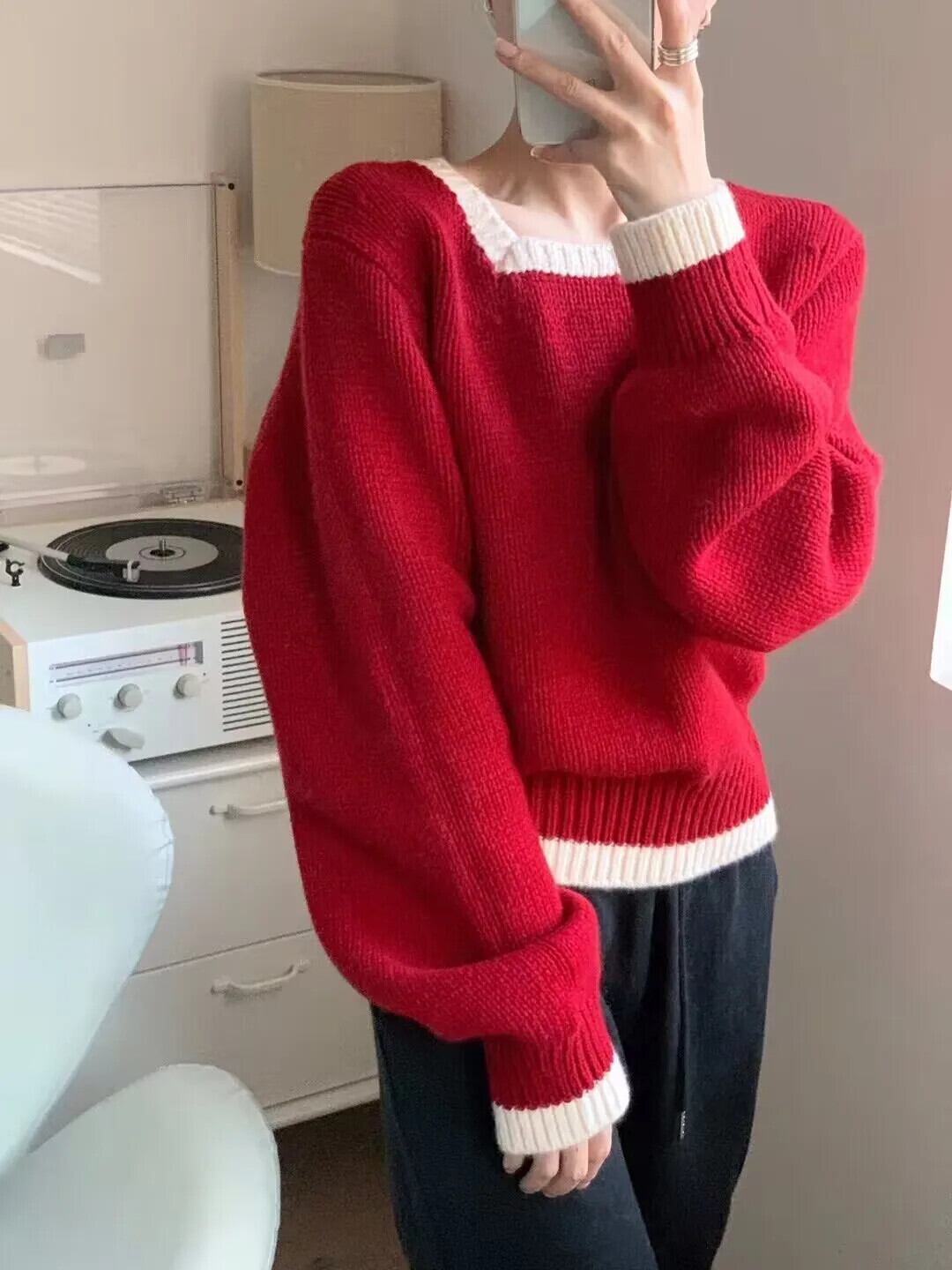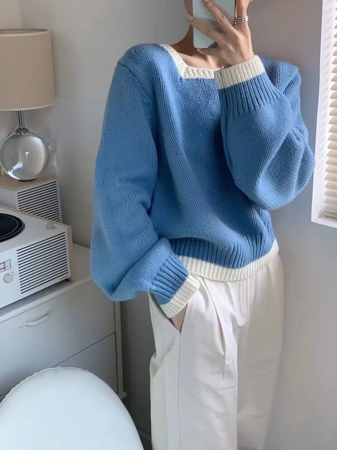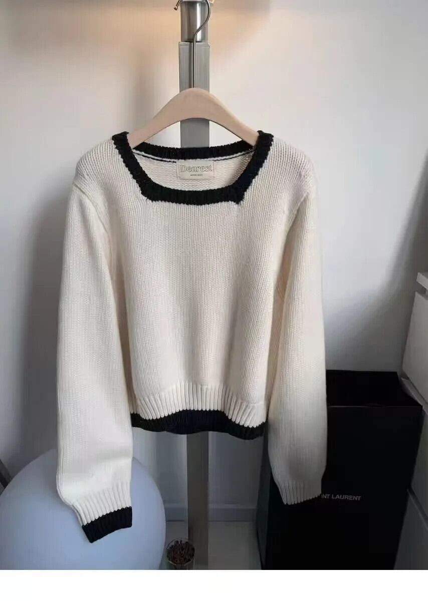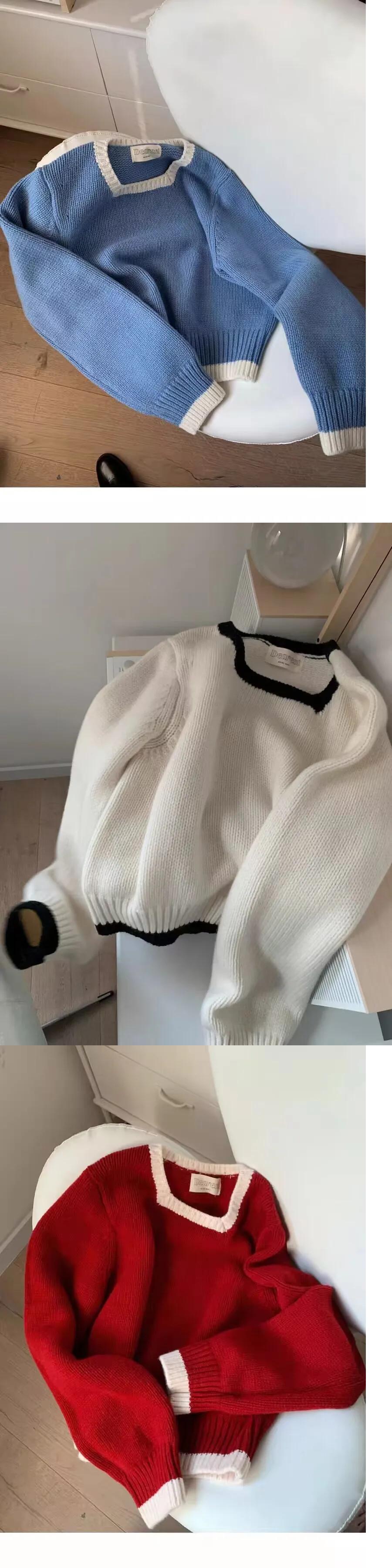 送料無料 Jielur 秋ヴィンテージコントラストカラープルオーバー女性ルーズリラックスニットプルオーバー白ピンク赤青プルオーバー ホワイト レッド ブルー オータム 秋物 ビンテージ AE12188787837180514414