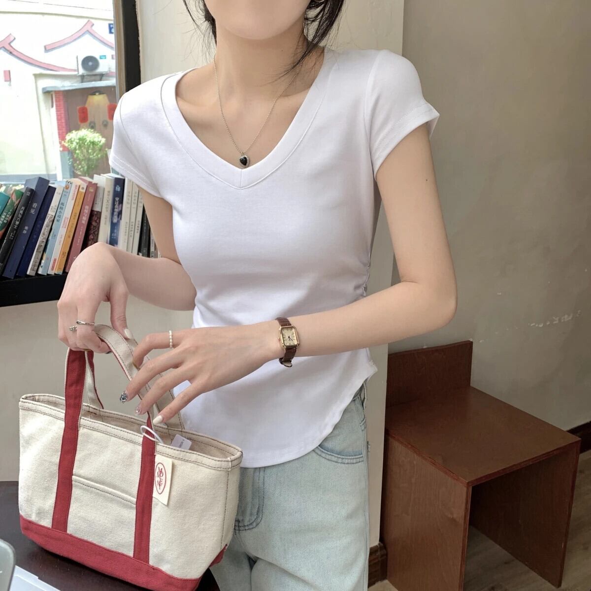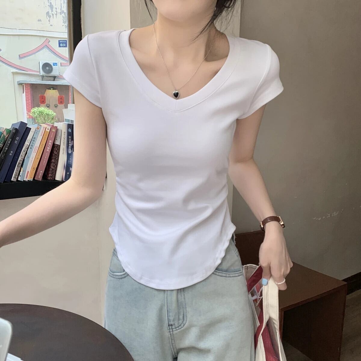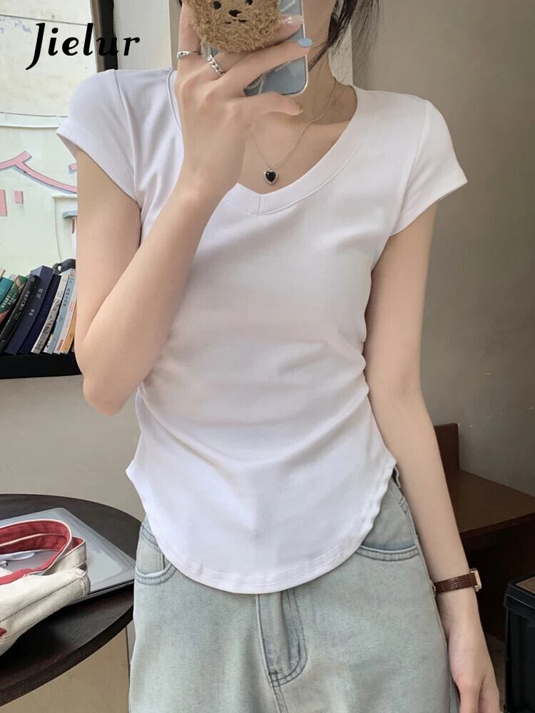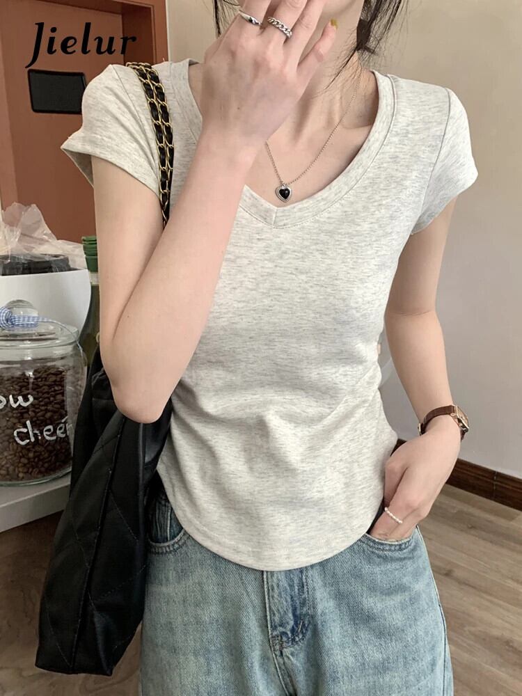 送料無料 Jielur 夏無地スリム女性の Tシャツルーズベーシック Tシャツ女性黒、白、グレーシンプルなトップ ホワイト ブラック サマー 夏物 ソリッドカラー AE12188787841737599018