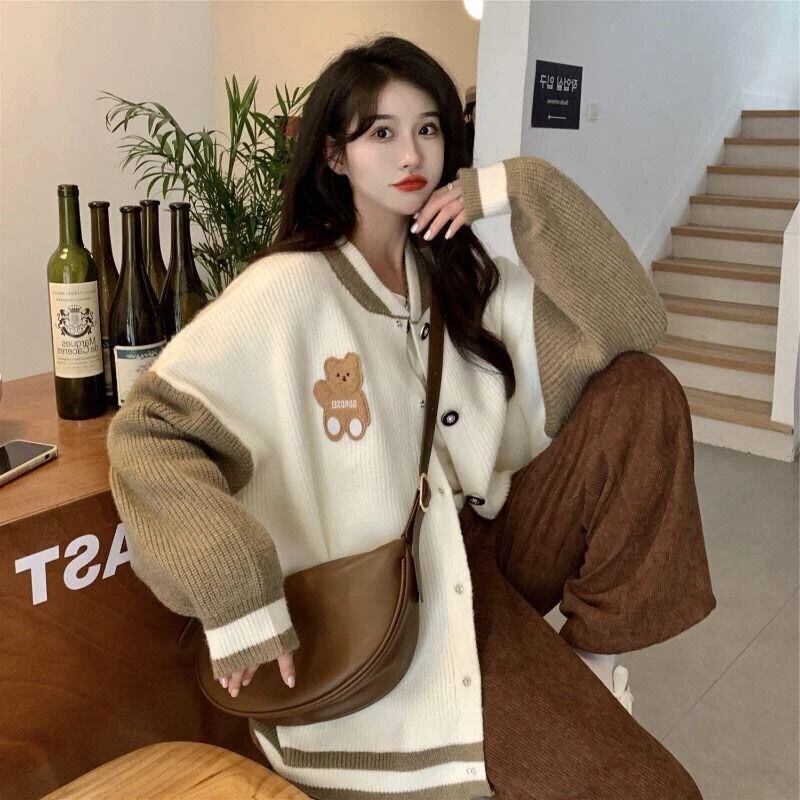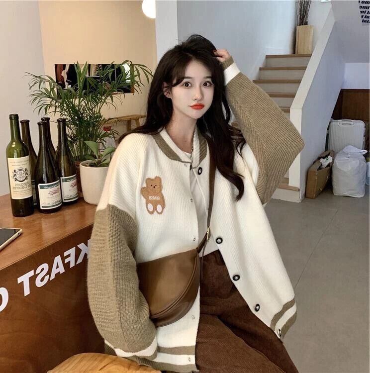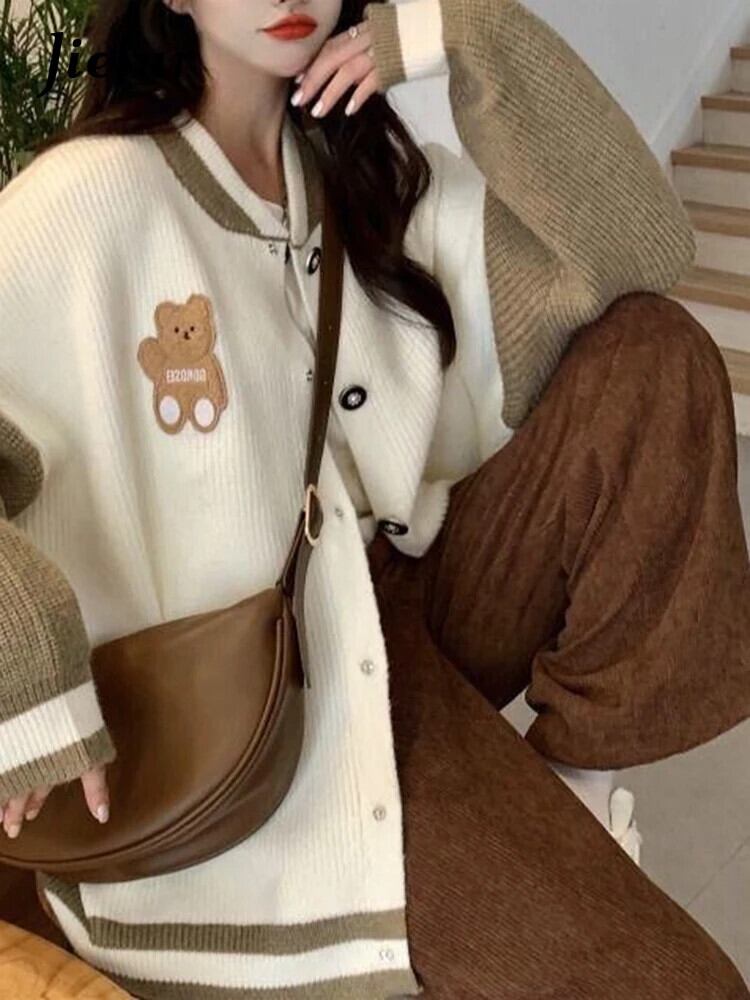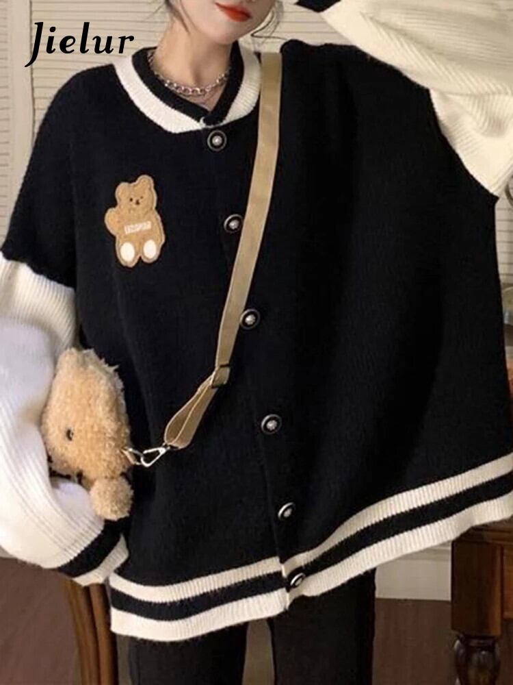 送料無料 Jielur 甘いスペルカラールーズニットセーターカーディガン秋 O ネックシックなボタンシングルブレスト女性カーディガン 大人ガーリー スウィート キュート カジュアル オータム 秋物 Oネック AE12188787867938145176