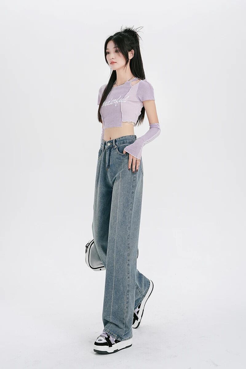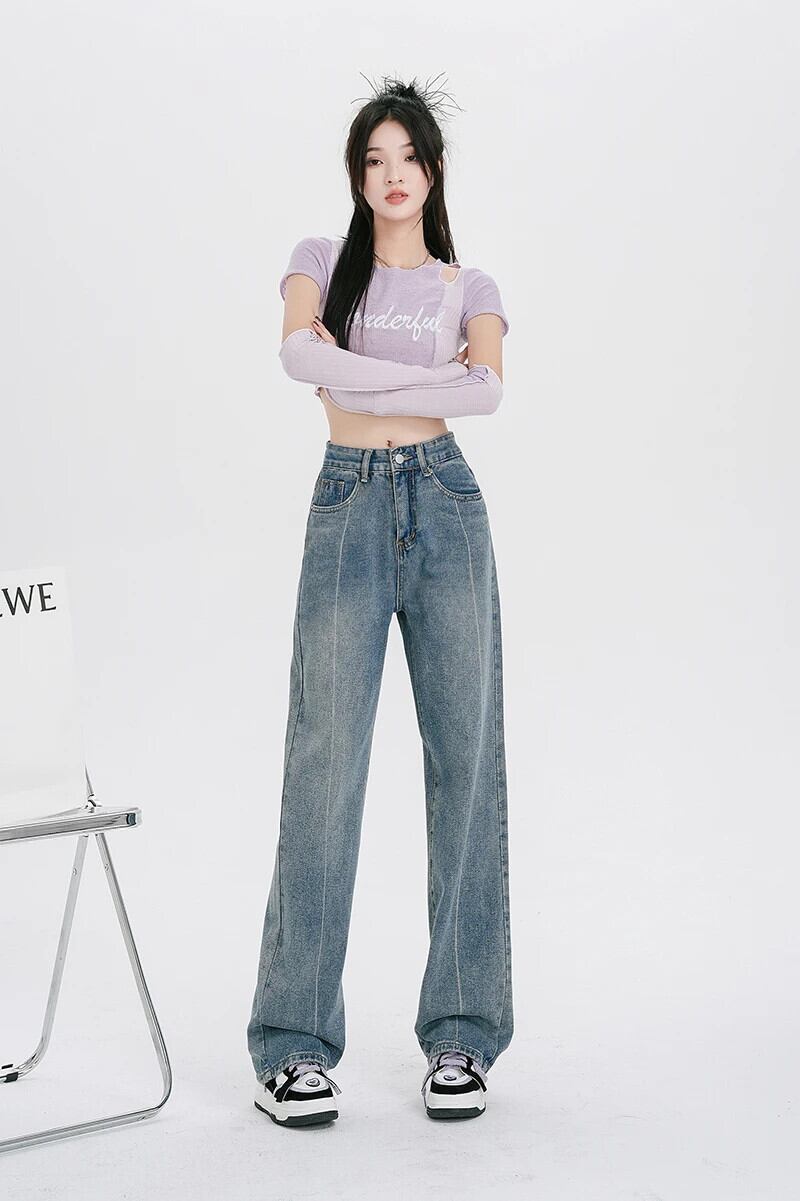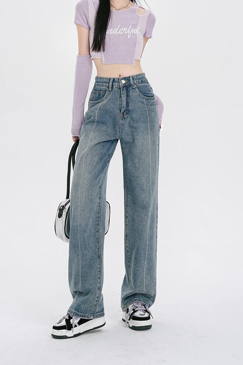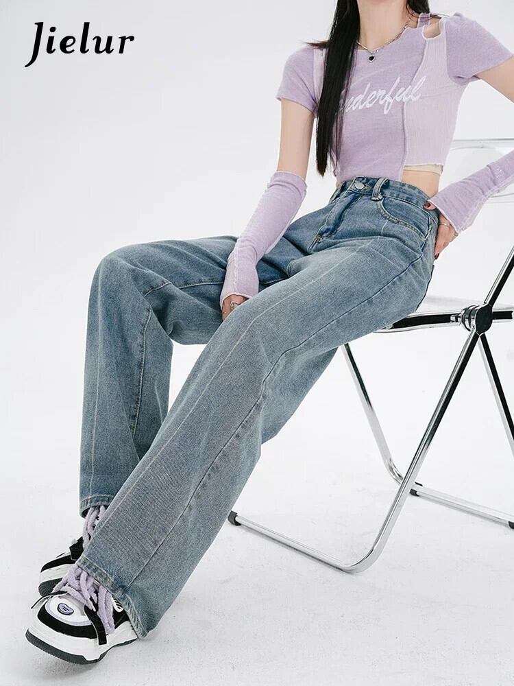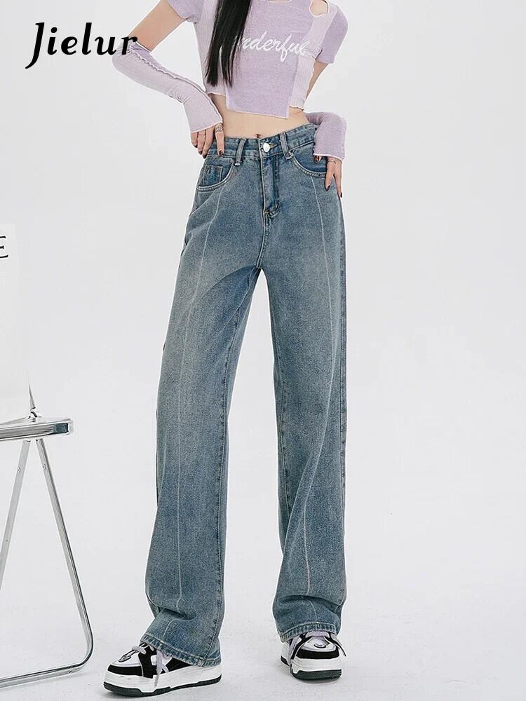送料無料 Jielur スタイルの女性のジーンズウエストルーズデニムパンツ夏だぶだぶのジーンズヴィンテージワイドレッグ Y2k ジーンズ サマー 夏物 ワイドパンツ ビンテージ AE12188787882475239651
