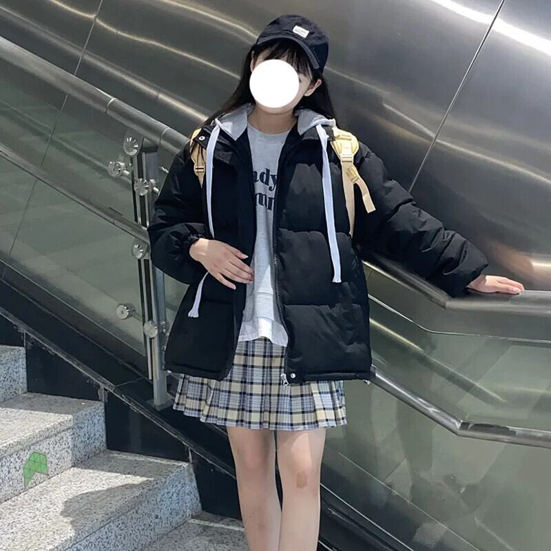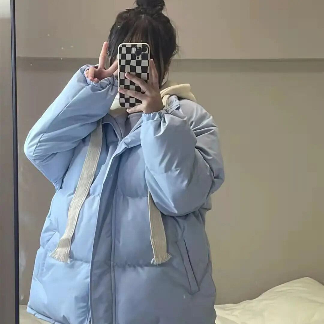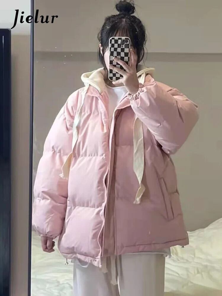送料無料 Jielur 偽ツーピース甘いルーズパーカー厚く暖かいフード付き巾着シックなジッパーポケット女性パーカー 大人ガーリー スウィート キュート カジュアル AE12188787849956586630
