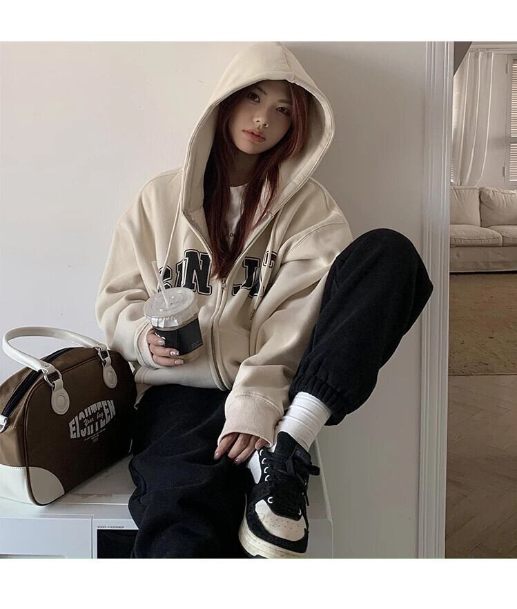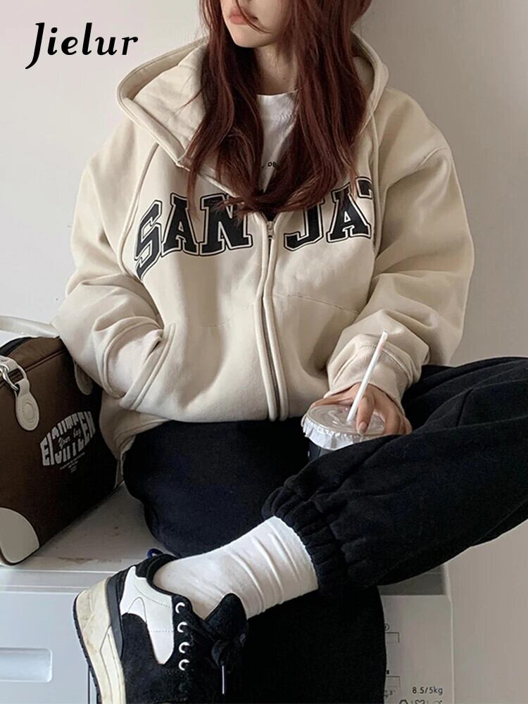 送料無料 Jielur フード付きシックな巾着レタープリントパーカーアメリカンストリートヴィンテージシンプルな女性パーカー ビンテージ AE12188787852681745689