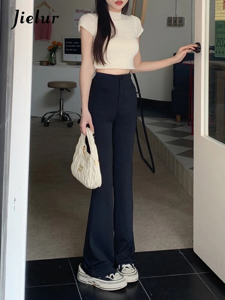 送料無料 Jielur 春タイトなウエストスリム女性のパンツ固体甘いパンツ若い黒ピンクの基本的な女性のパンツ ブラック 大人ガーリー スウィート キュート カジュアル スプリング 春物 ソリッドカラー AE12188787849141096127
