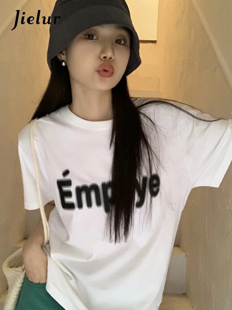 送料無料 Jielur シンプルな Tシャツ夏スタイルレタープリントルーズ半袖 Tシャツストリート白 Tシャツ女性 ホワイト サマー 夏物 AE12188787834824873830