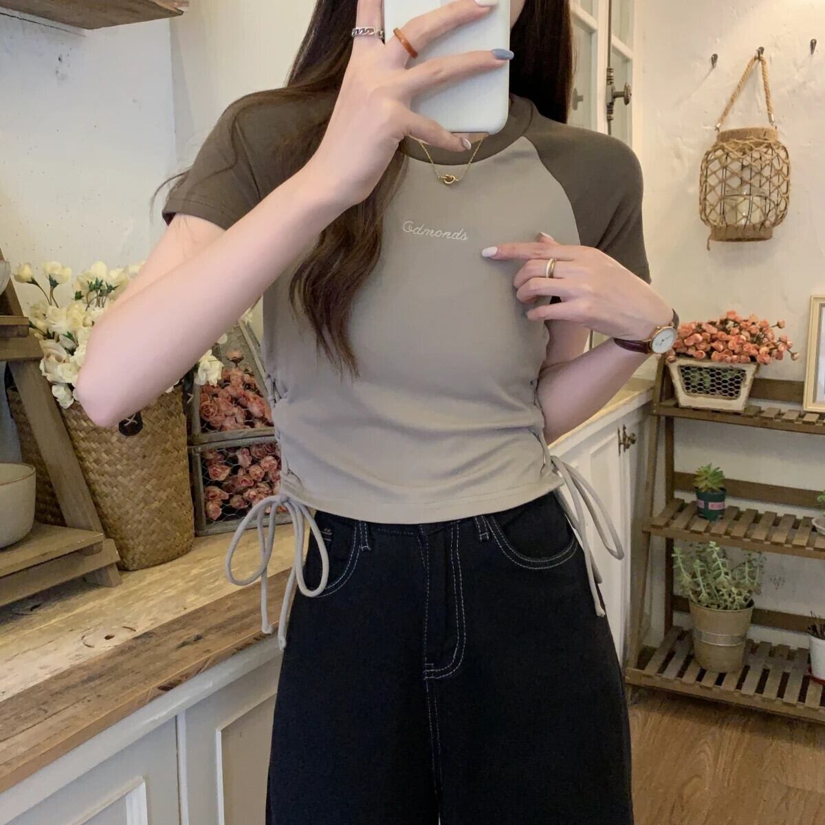 送料無料 Jielur 夏スリムコントラストカラーの女性の Tシャツシンプルなベーシック Tシャツ女性ホワイトカーキピンクトップ サマー 夏物 AE1218878784039008208