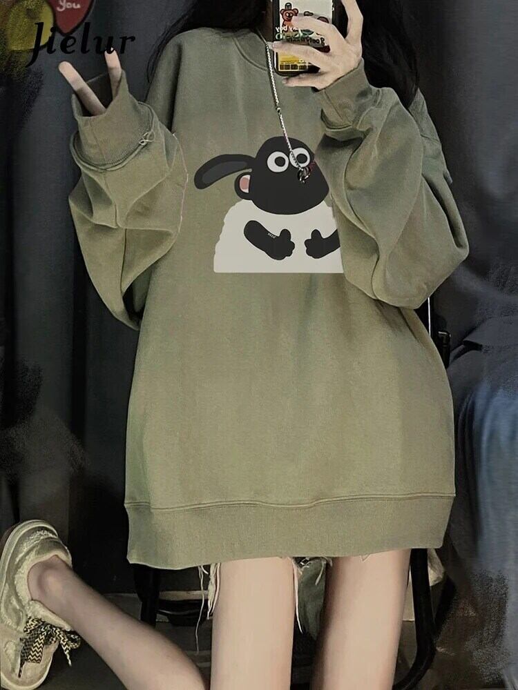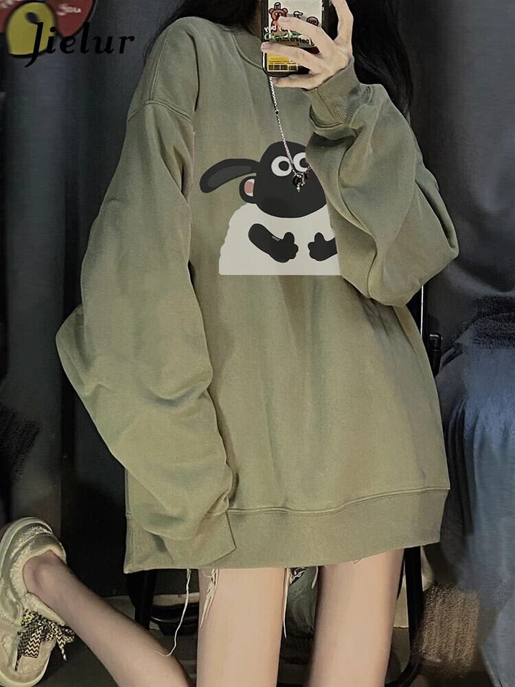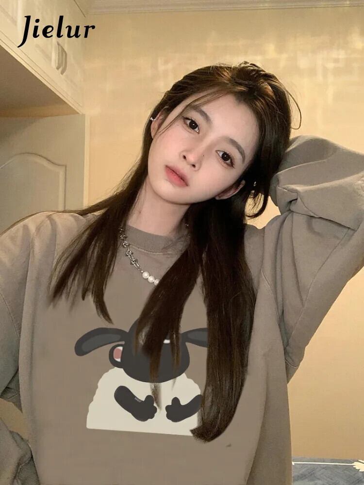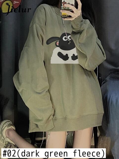 送料無料 Jielur フリースパーカー O ネックレディースパーカーシンプルな長袖プルオーバースウェットシャツ無地原宿トップ ロング かわいい Oネック ソリッドカラー AE12188787832240062519
