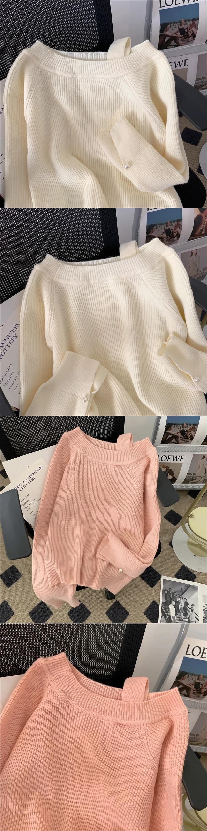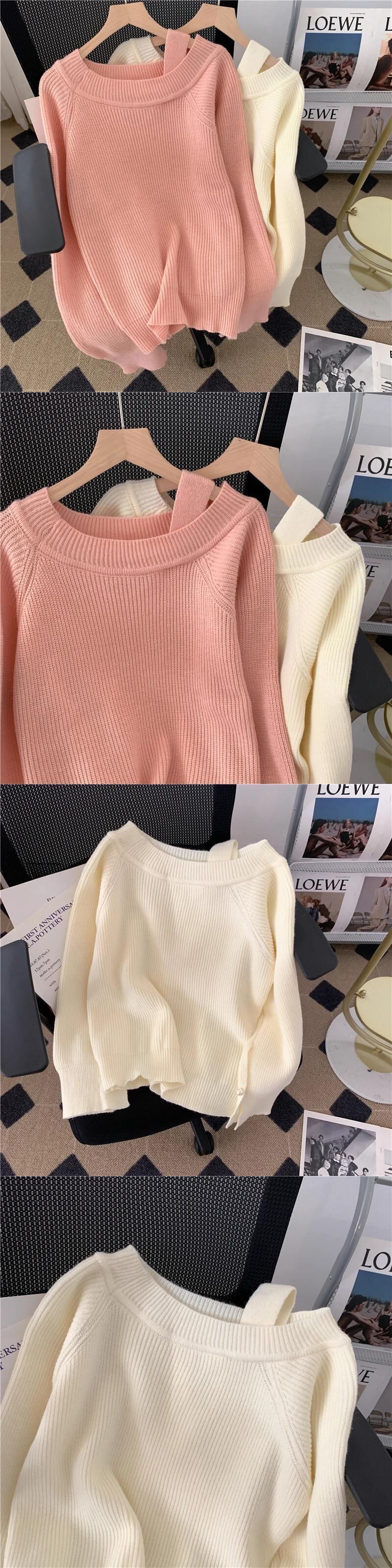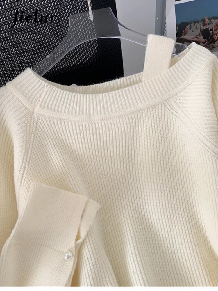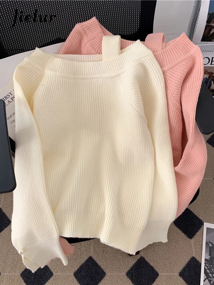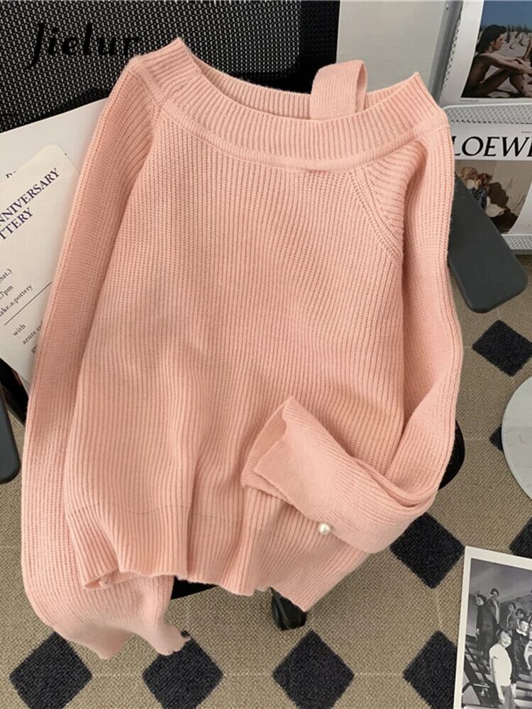 送料無料 Jielur シンプルシックな女性セーターカシミヤルーズピンク白プルオーバー怠惰なスタイル優しい甘いオフショルダーセーター秋 ホワイト 大人ガーリー スウィート キュート カジュアル オータム 秋物 AE12188787873407805632