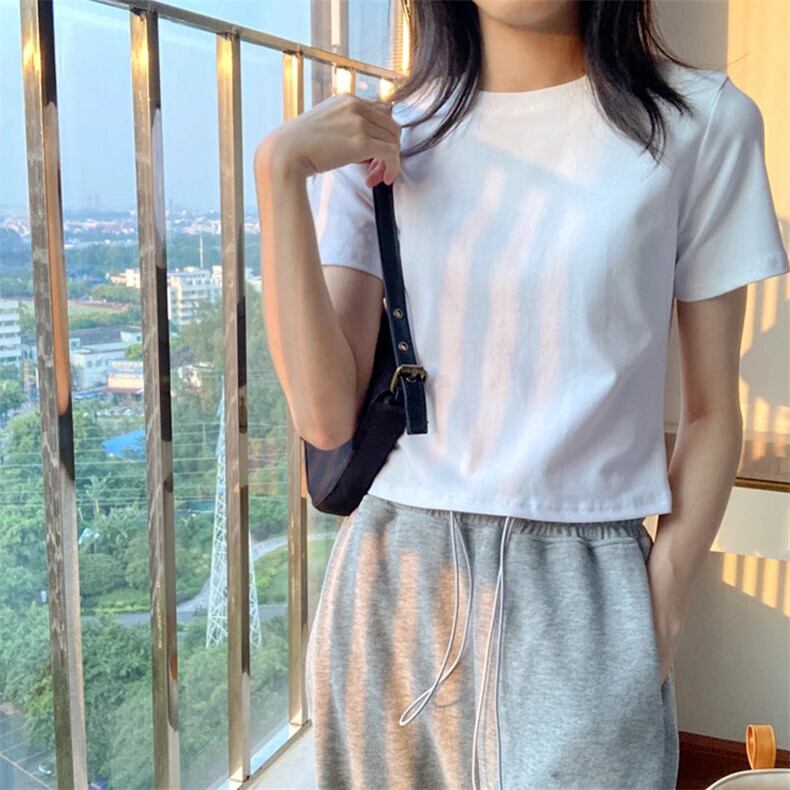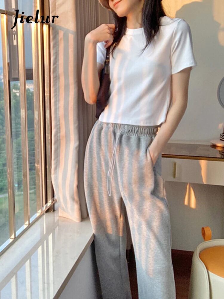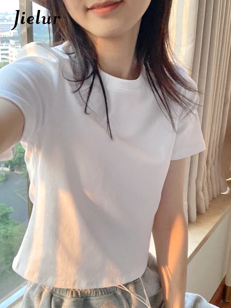 送料無料 Jielur 夏スリムソリッドカラーの女性の Tシャツインスウィートベーシックシンプルな Tシャツ女性若い白トップ ホワイト 大人ガーリー キュート カジュアル サマー 夏物 AE12188787847991377039