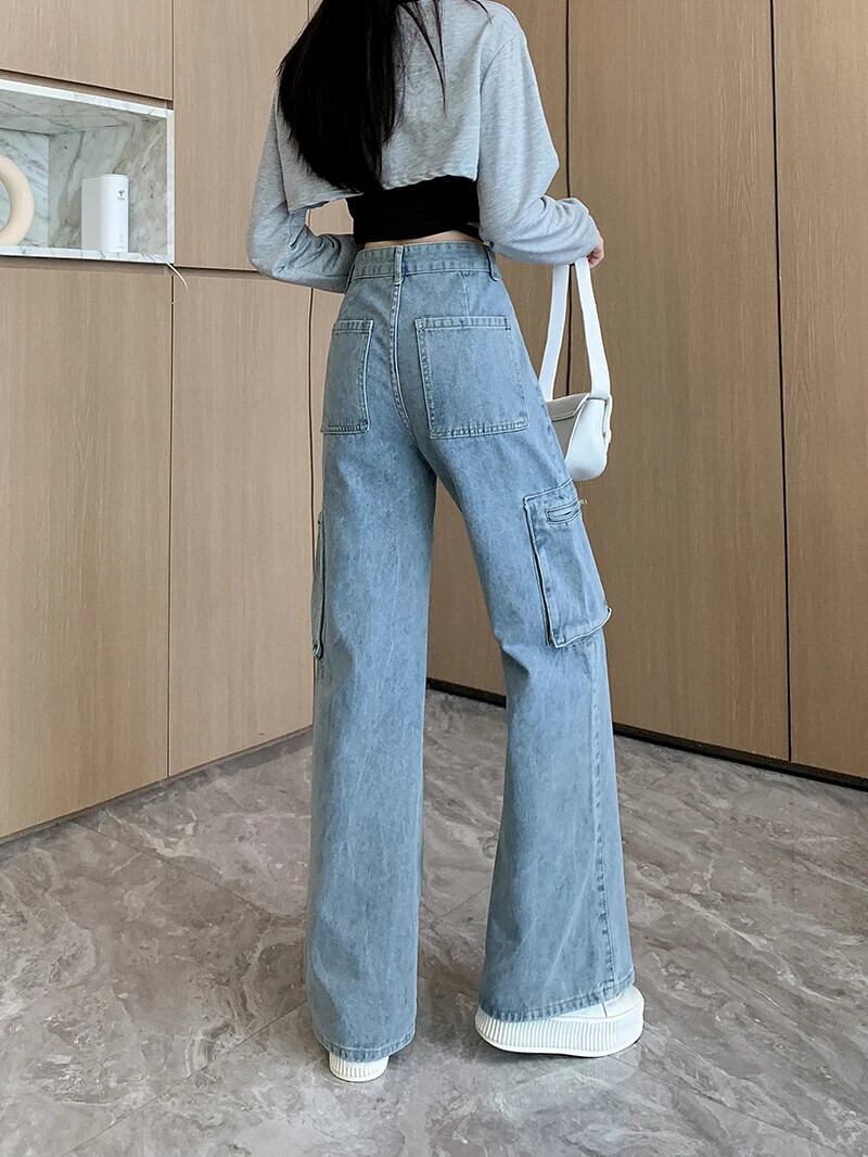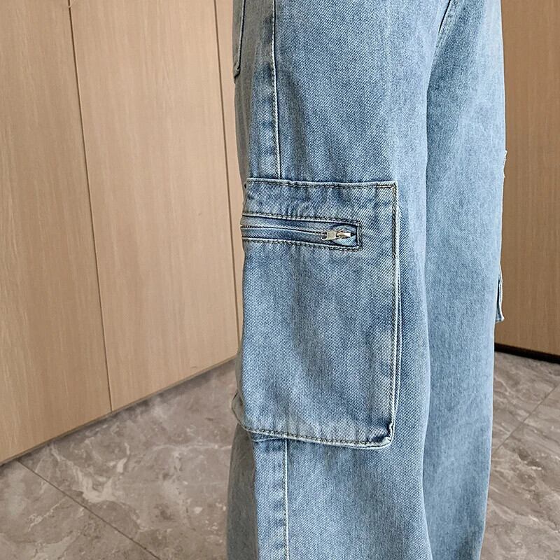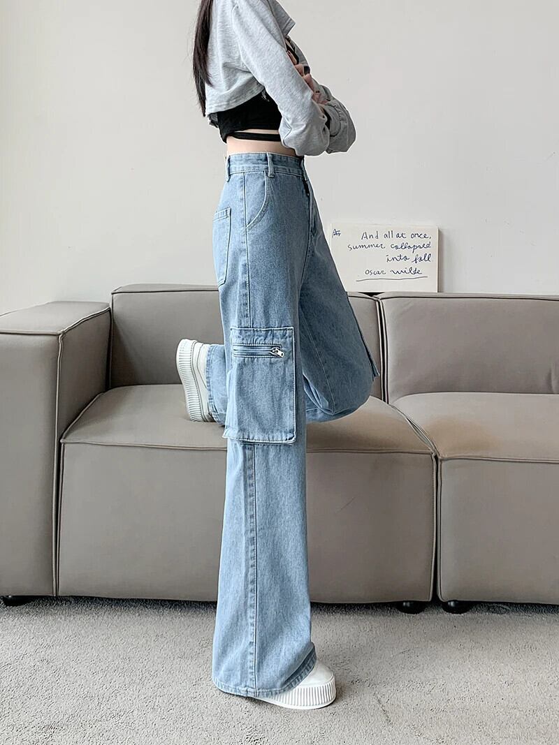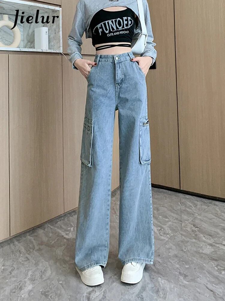 送料無料 Jielur レトロアメリカ秋ルーズ女性ジーンズライトブルーウエスト女性ジーンズストリートベーシックストレートレッグパンツ オータム 秋物 AE12188787898980106793
