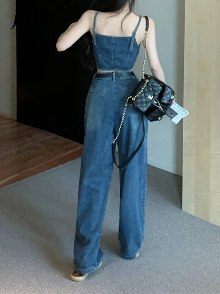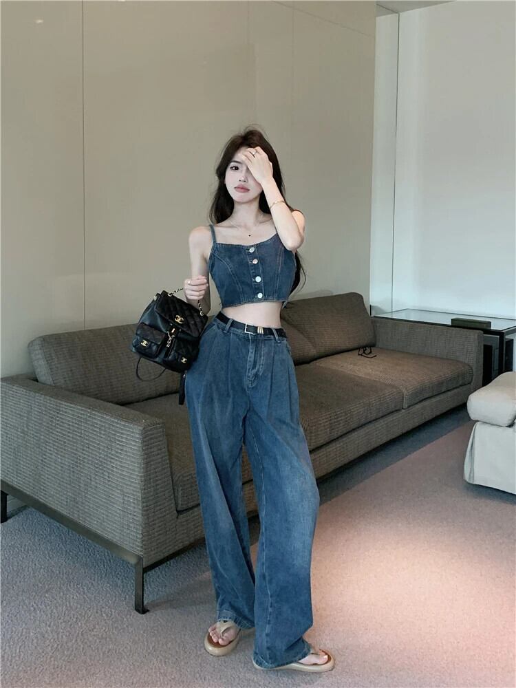 送料無料 Jielur ツーピース夏ルーズ因果女性のジーンズストリートスリムジーンズ女性のセクシーな甘いヴィンテージシックなデニムトップ 大人ガーリー スウィート キュート カジュアル サマー 夏物 ビンテージ AE1218878783264050322