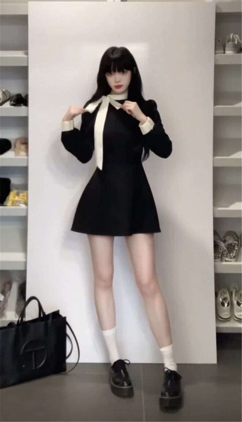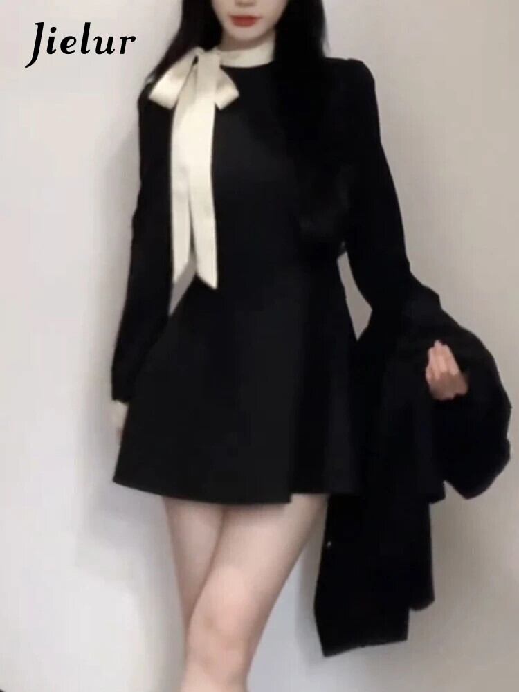 送料無料 Jielur Sweet Chicly 女性ドレスフレンチスリムシンプルな女性のドレス黒シフォン長袖ドレス ロング ブラック 大人ガーリー スウィート キュート カジュアル AE12188787871718680253