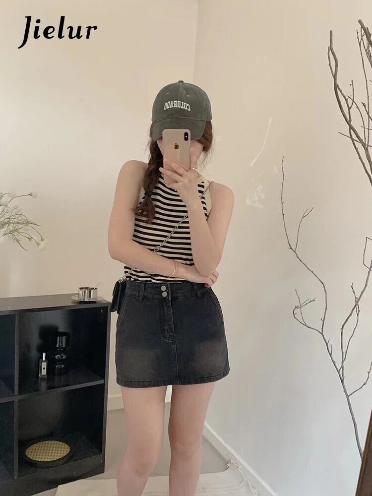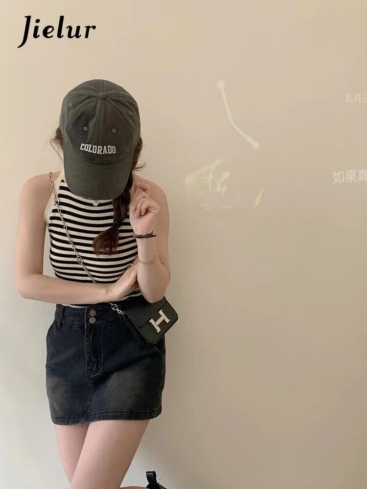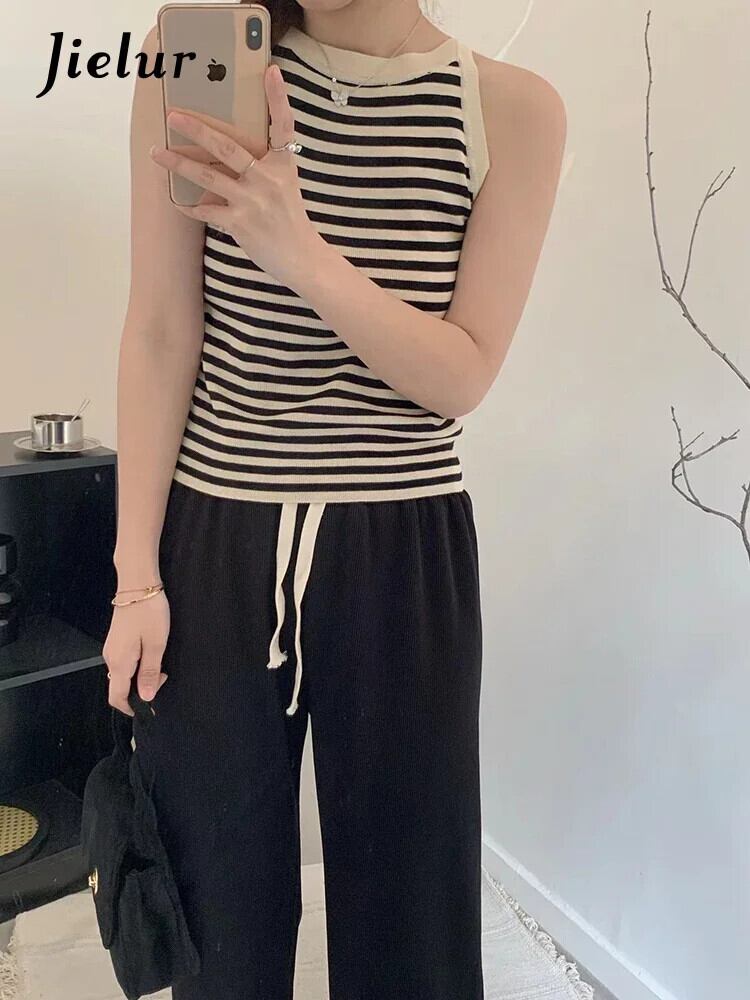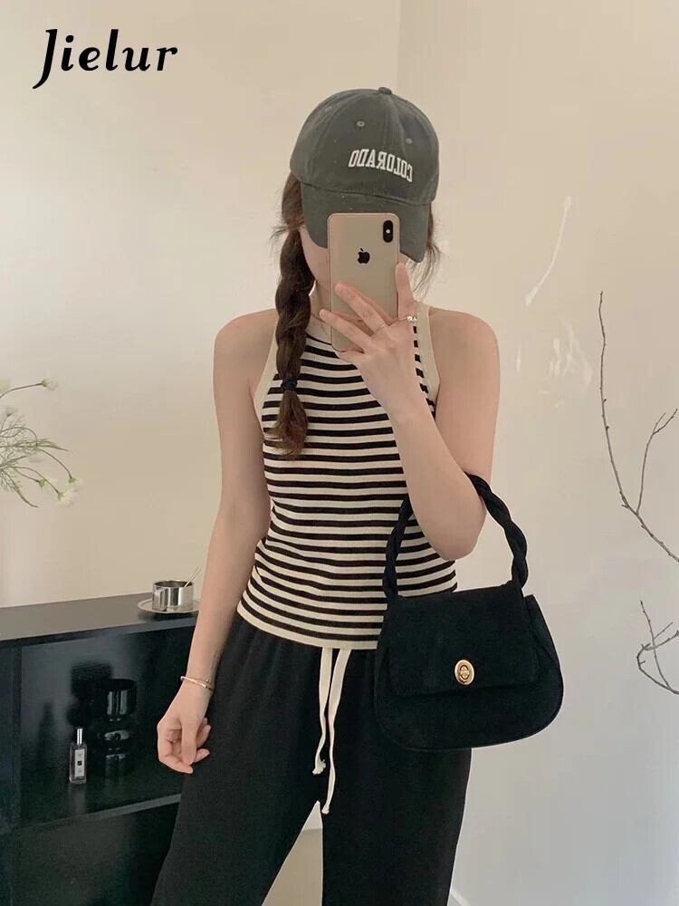送料無料 Jielur 夏ホルタースペルカラータンクトップニットセクシーなサイドストライプノースリーブ女性のトップ若々しいタンク サマー 夏物 AE12188787812330457050