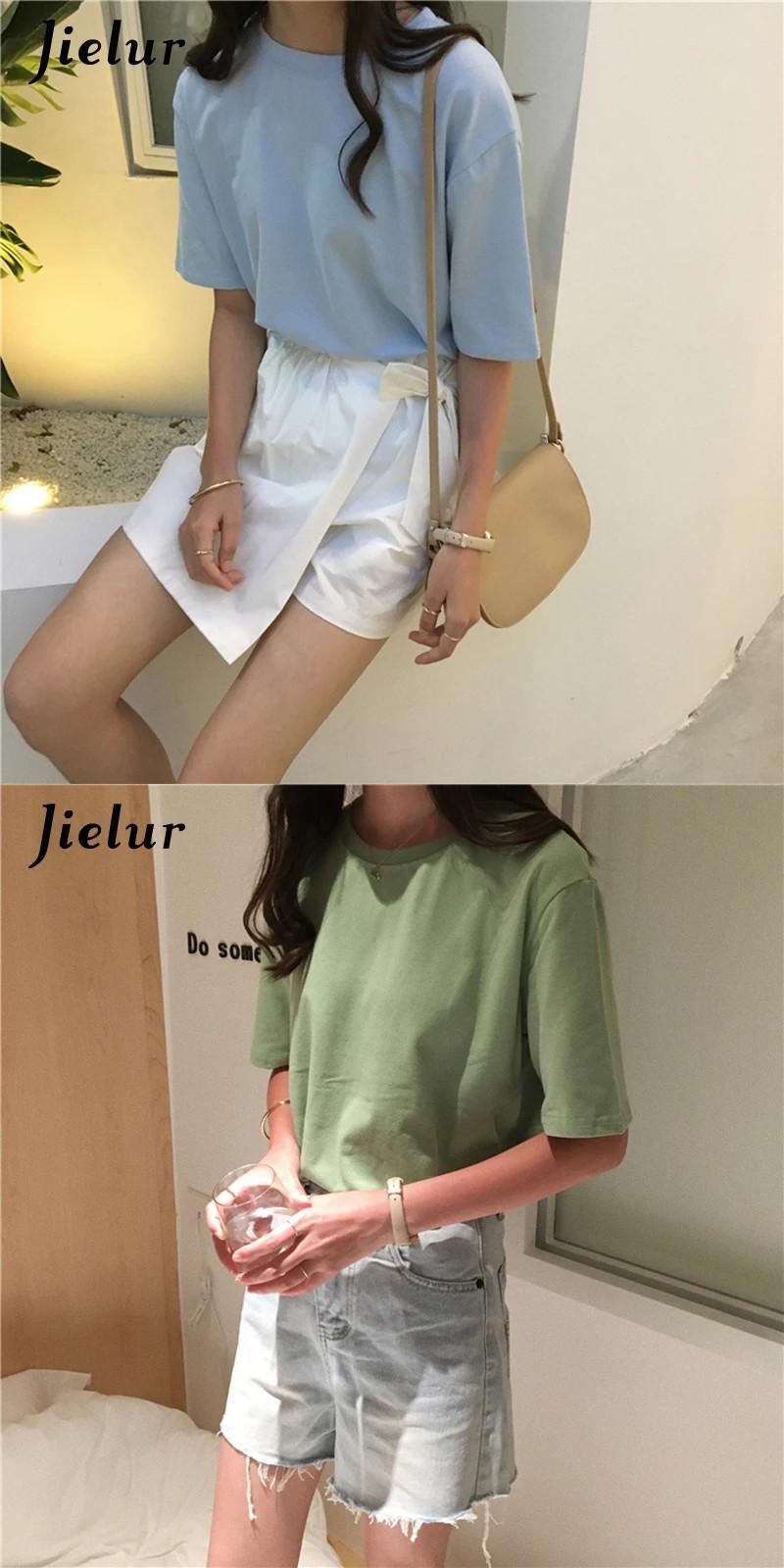 送料無料 Jielur Tシャツ無地ベーシック Tシャツ女性 O ネック原宿夏トップヒップスター白 Tシャツ S-XL ホワイト かわいい サマー 夏物 Oネック ソリッドカラー AE12188787810935870420
