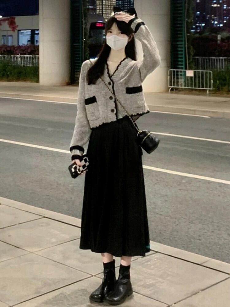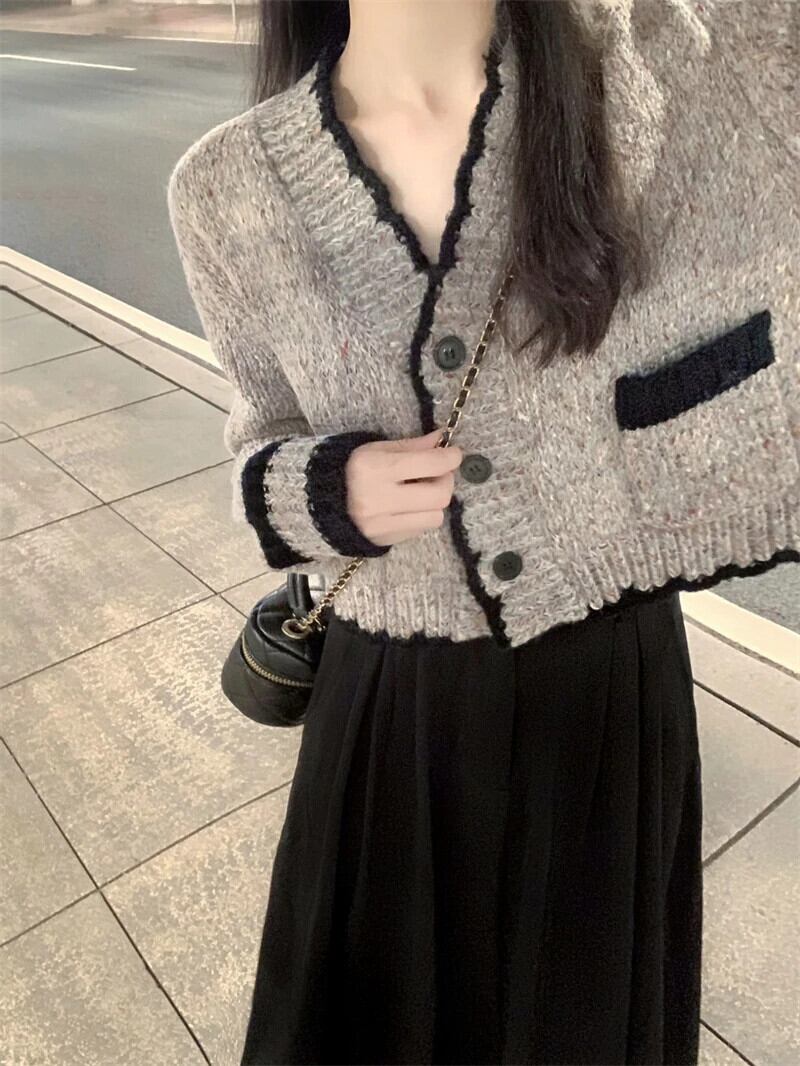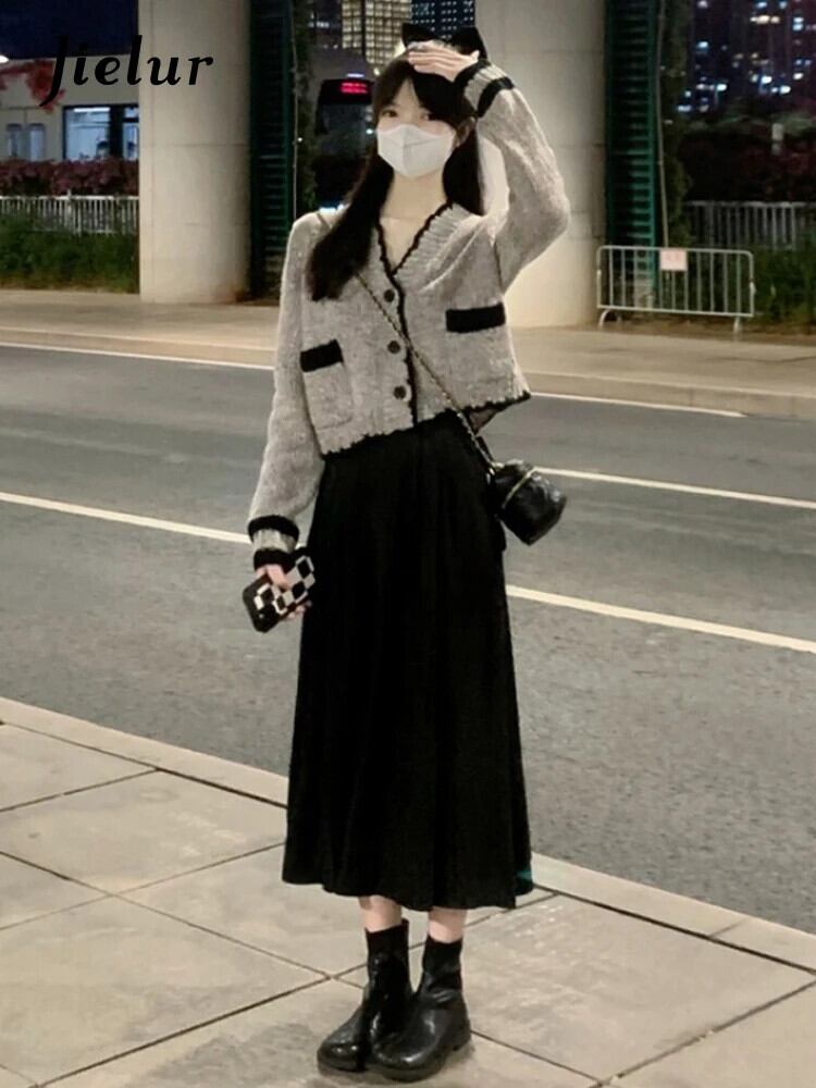 送料無料 Jielur グレー V ネックニットセーター女性カーディガン秋フランスオフィススリムシングルブレストカーディガン オータム 秋物 Vネック 会社 学校 通勤や通学にも AE12188787814254175291