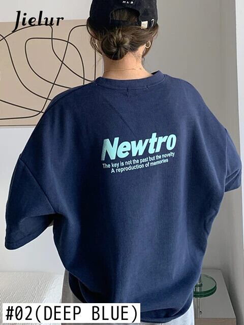 送料無料 Jielur レタープリントルーズ Tシャツ女性の夏ネイビーピンクグレートップルーズストリート原宿ボーイフレンド Tシャツ M-XL かわいい サマー 夏物 AE1218878781853658924