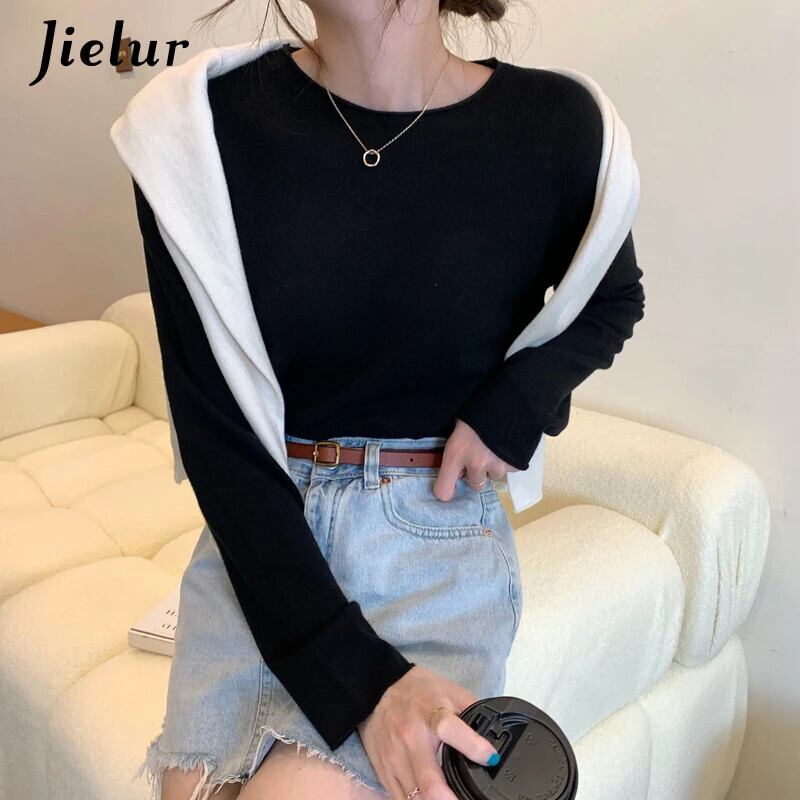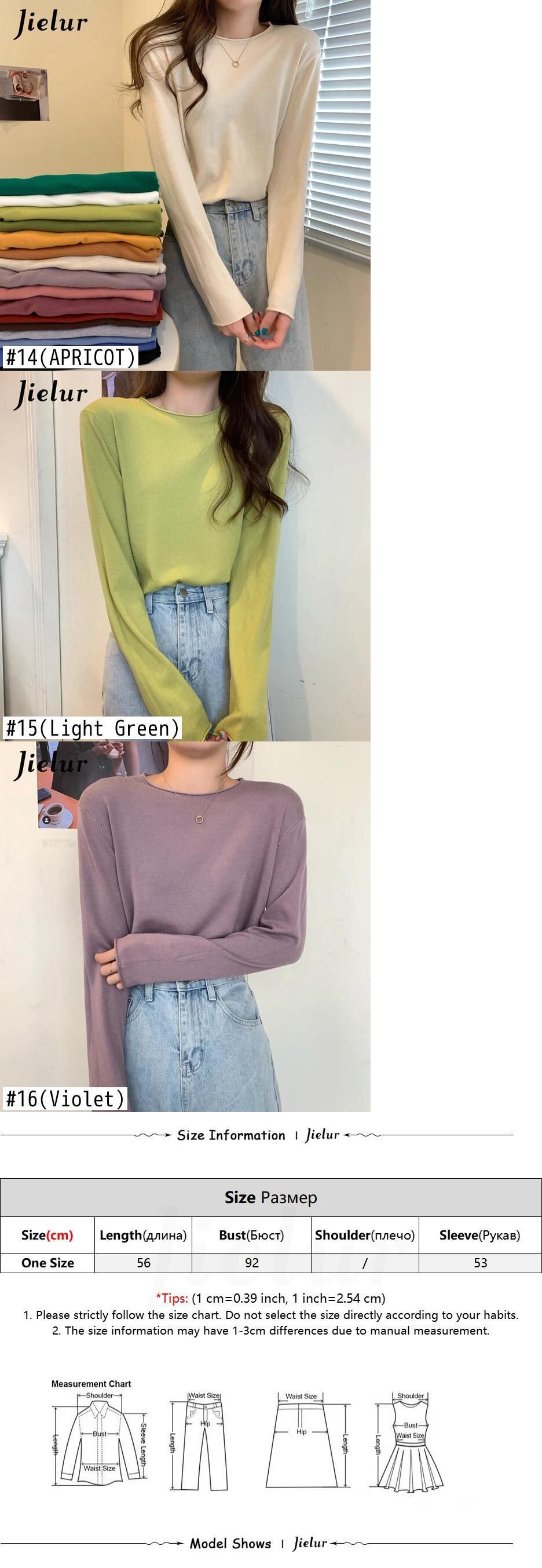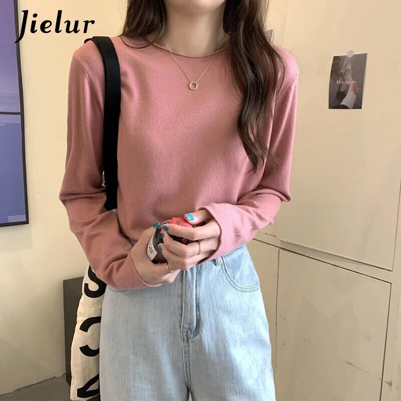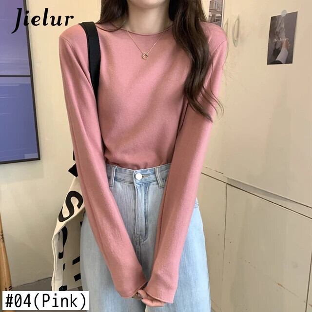 送料無料 Jielur 16 色秋冬トップルーズニットセーター女性長袖ベーシック Tシャツ純粋なニットウェア ロング オータム 秋物 ウィンター 冬物 ピュア AE12188787889769905379