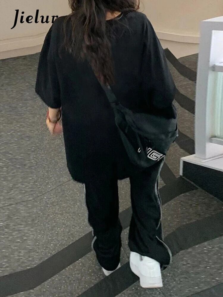 送料無料 Jielur 夏アメリカンスリム女性の Tシャツルーズストリートベーシック Tシャツ女性黒のベーシック Chicly トップ ブラック サマー 夏物 AE12188787828902080783