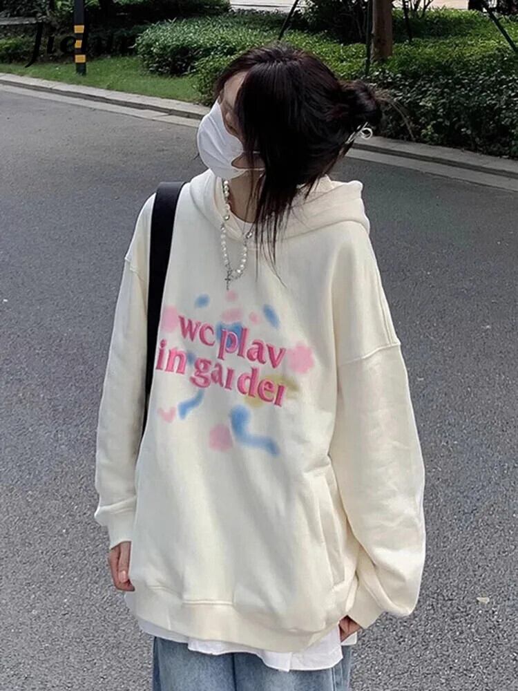 送料無料 Jielur フード付きチクリレタープリントルーズパーカー無地アメリカンストリート冬のベーシックシンプルな女性パーカー ウィンター 冬物 ソリッドカラー AE12188787825583046075