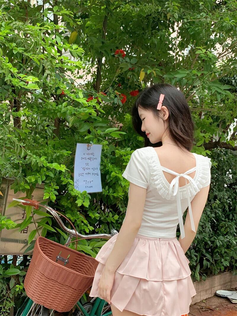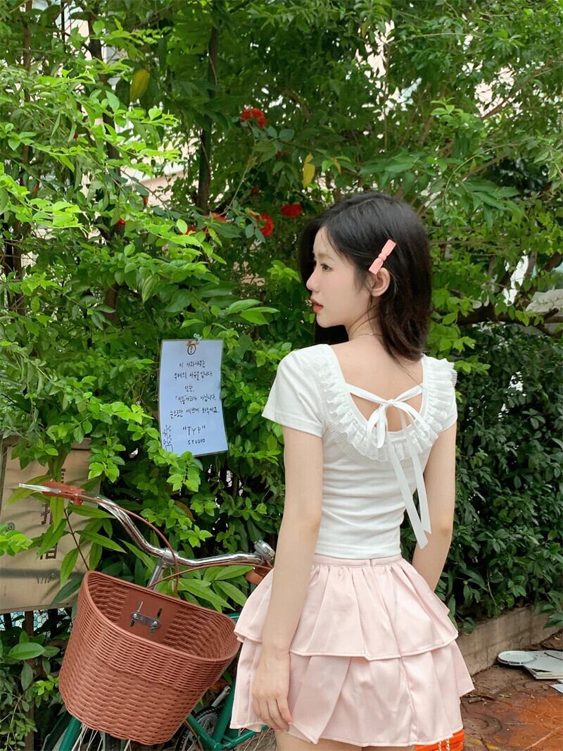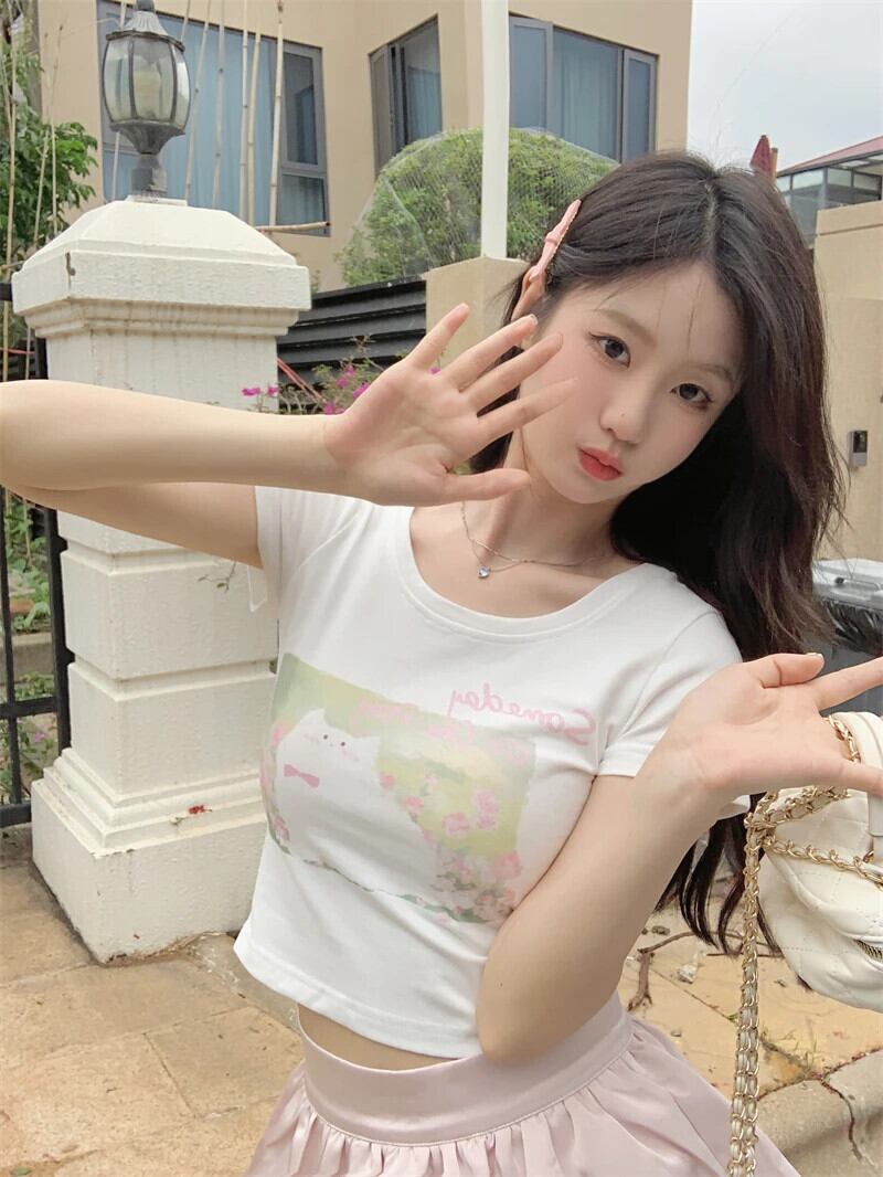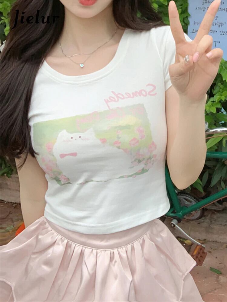 送料無料 Jielur 夏甘いスリムシックな女性の Tシャツ Tシャツ女性ホワイトグレー O ネックレーストップ 大人ガーリー スウィート キュート カジュアル サマー 夏物 Oネック AE12188787843370244725