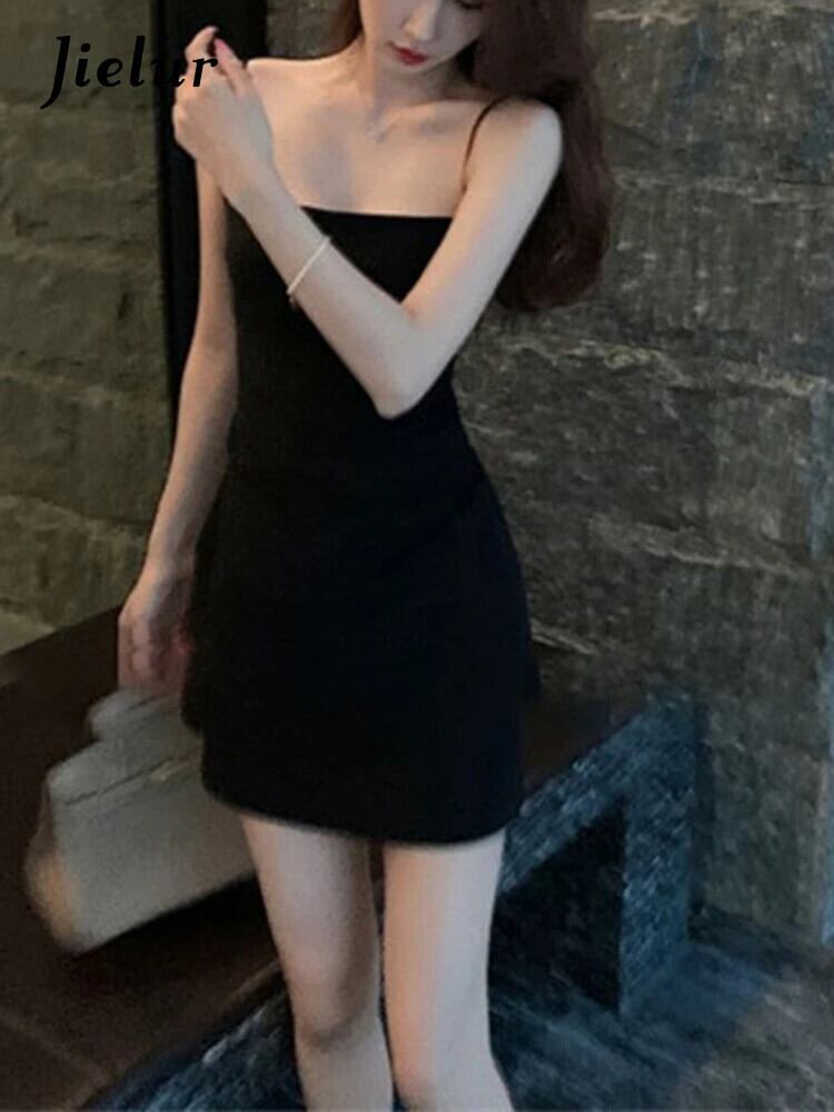 送料無料 Jielur 夏ソリッドカラーのセクシーな女性のドレス甘いスリムドレス女性ピンク黒タイトなヒップノースリーブドレス ブラック 大人ガーリー スウィート キュート カジュアル サマー 夏物 AE12188787855494396670