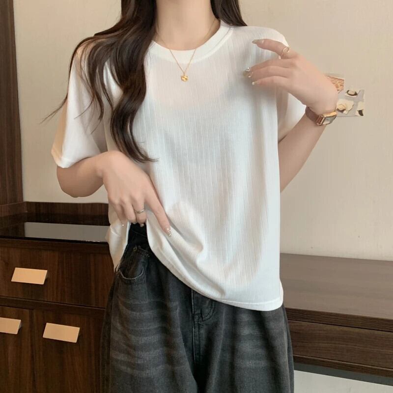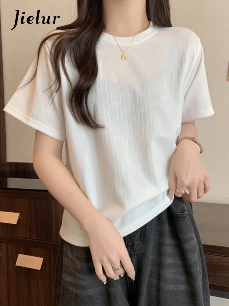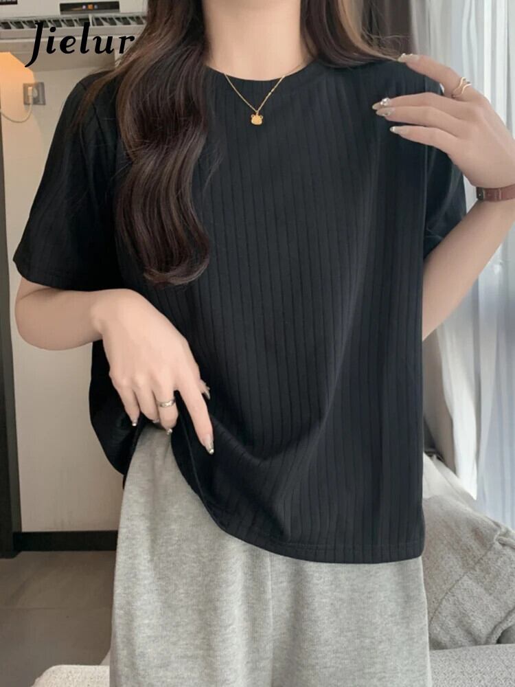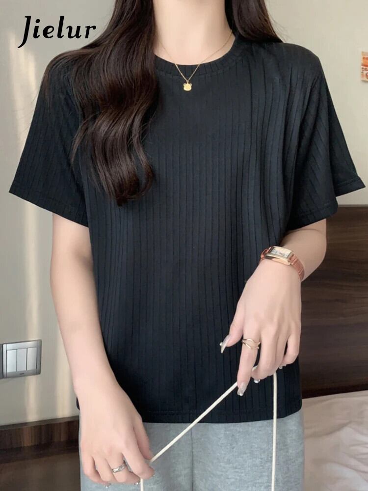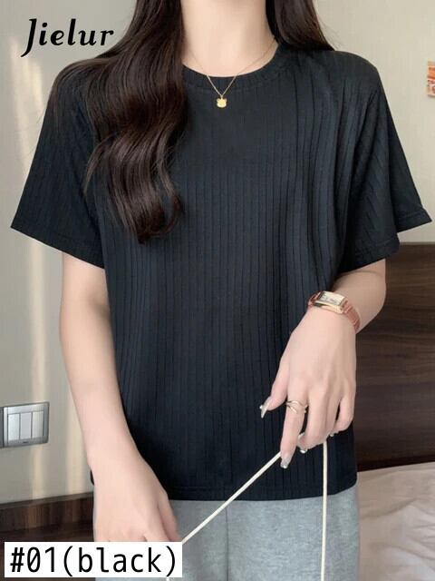 送料無料 Jielur 夏半袖黒、白 Tシャツ女性ソリッドカラールーズトップ O ネックコットン Tシャツ ショート ホワイト ブラック ハーフスリーブ サマー 夏物 Oネック AE12188787887809478173