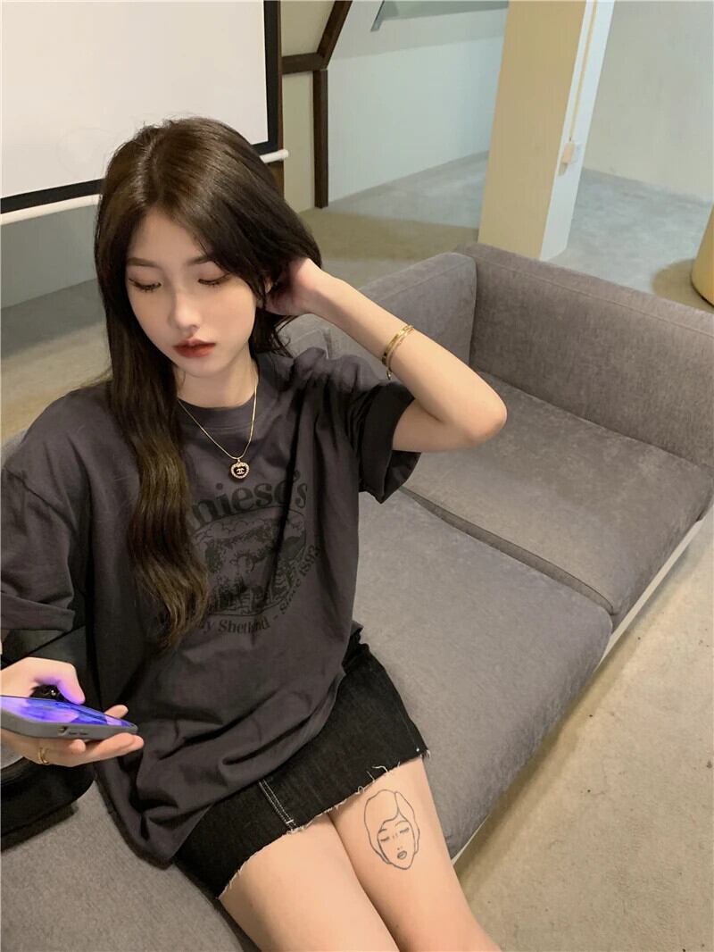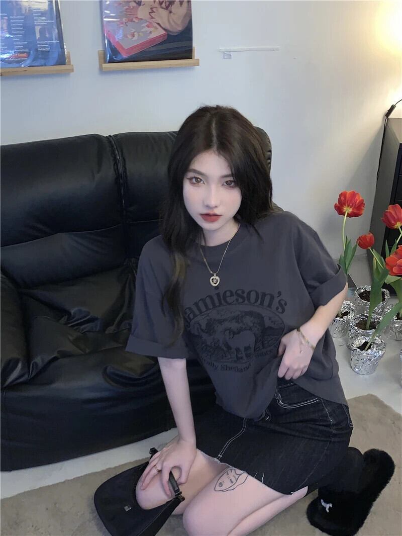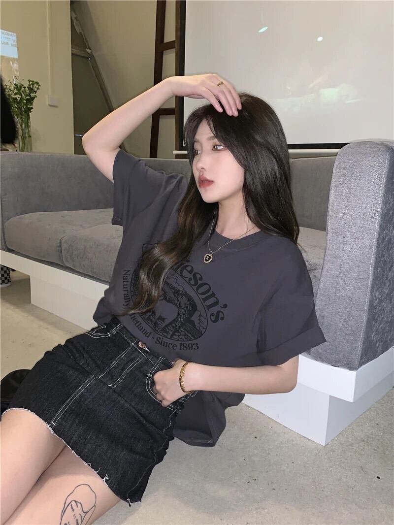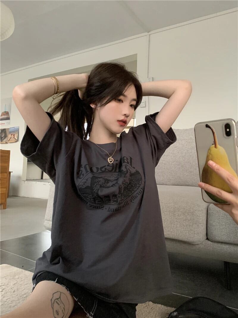 送料無料 Jielur グレー半袖 Tシャツ原宿ストリート Tシャツ夏 O ネック漫画プリント Tシャツ Tシャツ女性 ショート ハーフスリーブ かわいい サマー 夏物 Oネック AE12188787819535985338