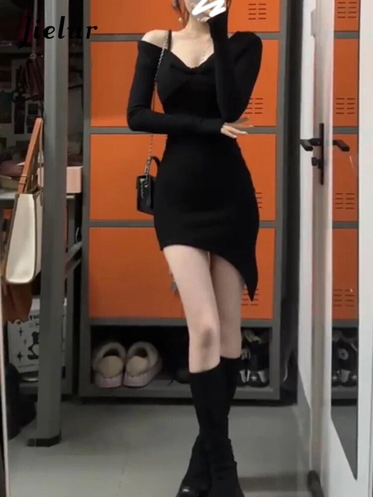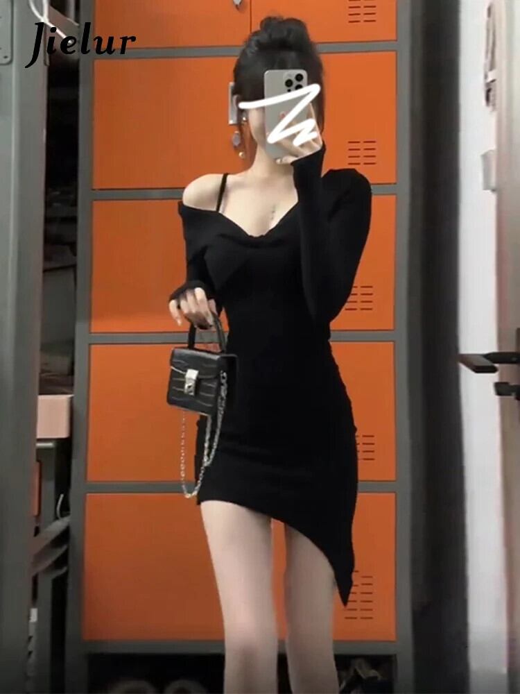 送料無料 Jielur 春甘い Chicly 女性ドレスセクシーなパーティータイトヒップ女性ドレス黒ストリートシンプルなドレス ブラック 大人ガーリー スウィート キュート カジュアル スプリング 春物 AE12188787890166513392