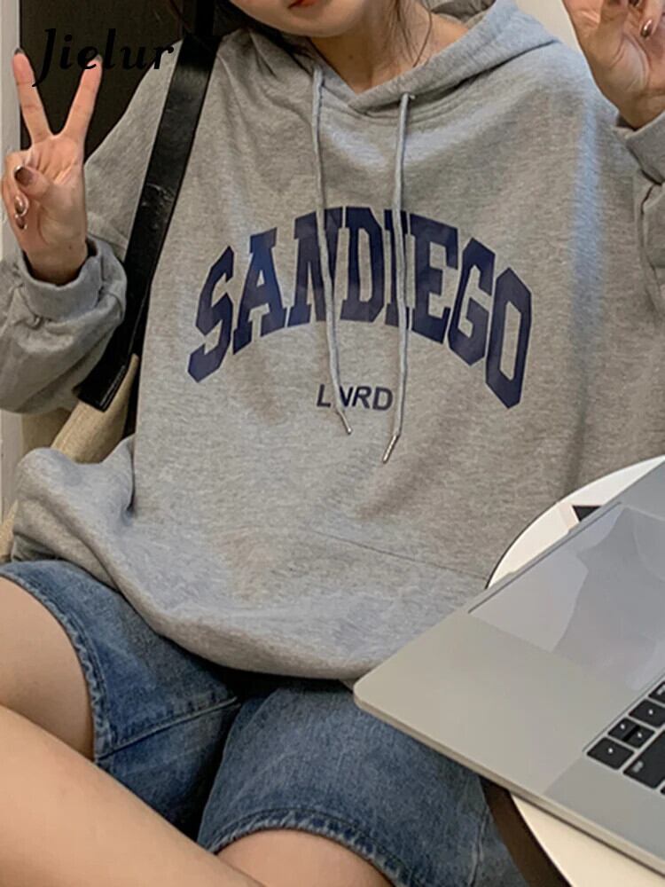 送料無料 Jielur 秋のコントラストカラースリムパーカー女性ルーズストリートシックなパーカー赤黒白トップ女性 ホワイト レッド ブラック オータム 秋物 AE12188787820894599251