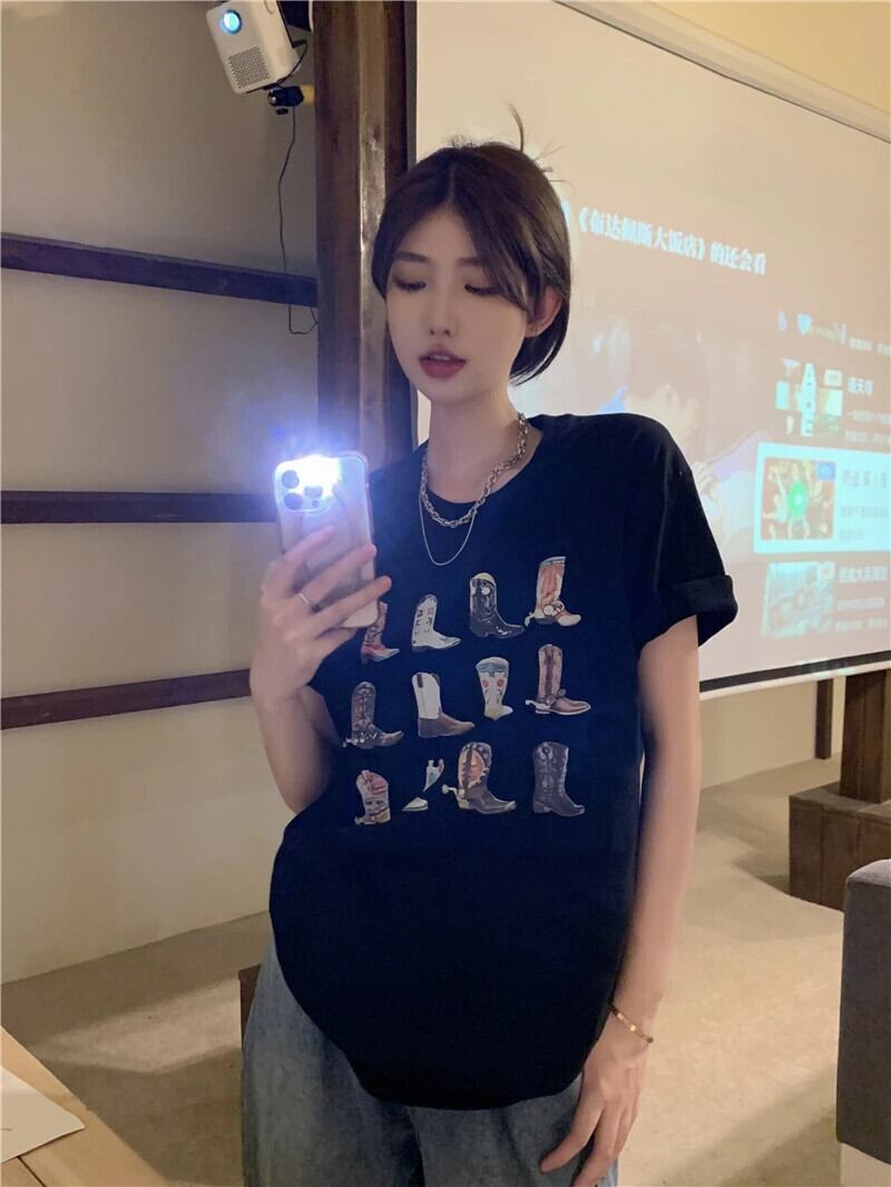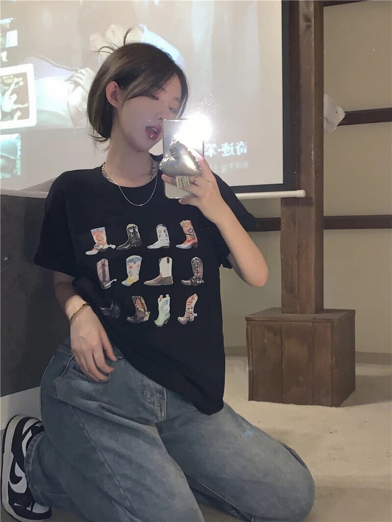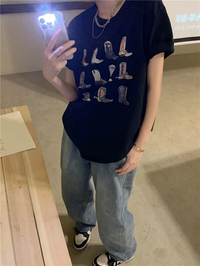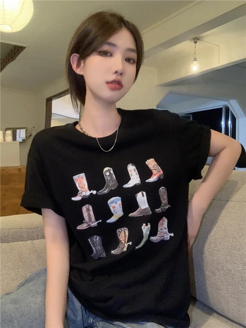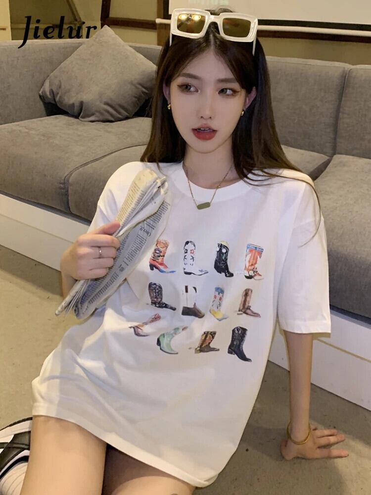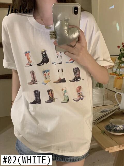 送料無料 Jielur 夏かわいいプリント半袖 Tシャツクリック黒トップス女性漫画白 Tシャツルーズ Tシャツ ホワイト ブラック 大人ガーリー スウィート キュート カジュアル サマー 夏物 AE12188787893090683422