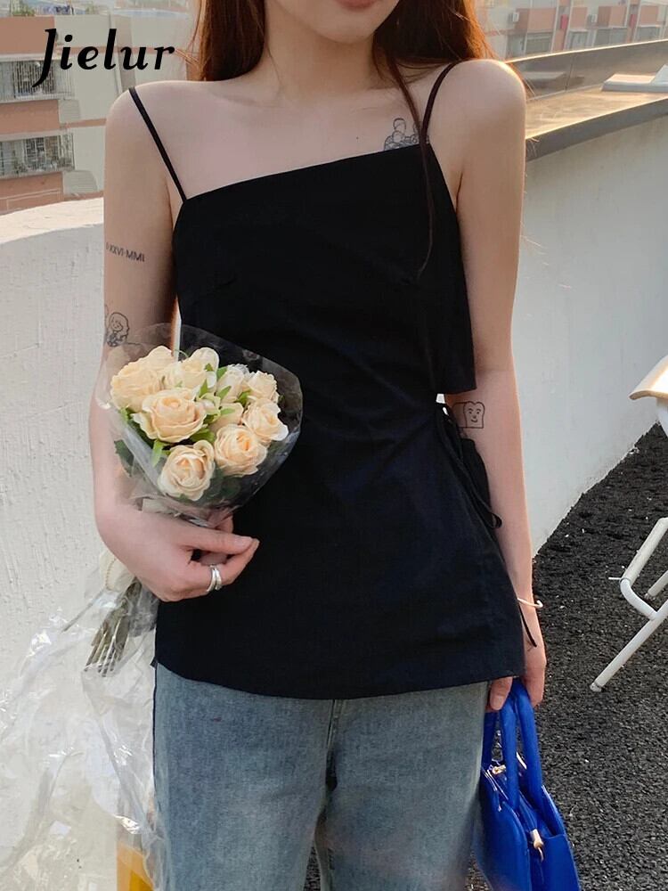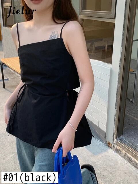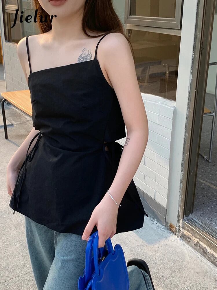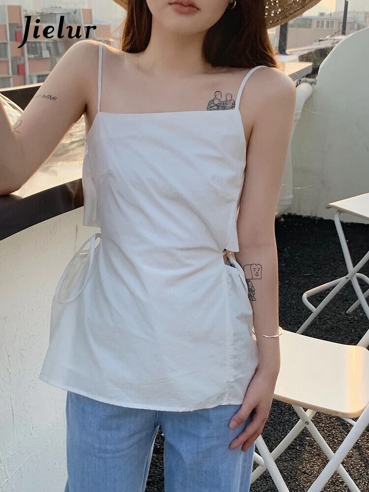 送料無料 Jielur 夏中空アウトスリムウエスト女性タンク無地セクシーなスリムストラップレスブラックホワイトスイートシックなトップ 大人ガーリー スウィート キュート カジュアル サマー 夏物 ソリッドカラー AE12188787832743081412