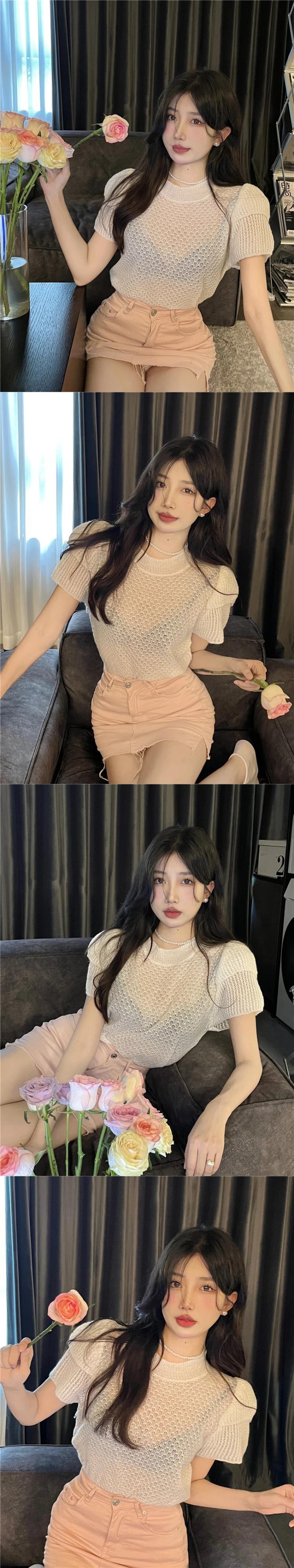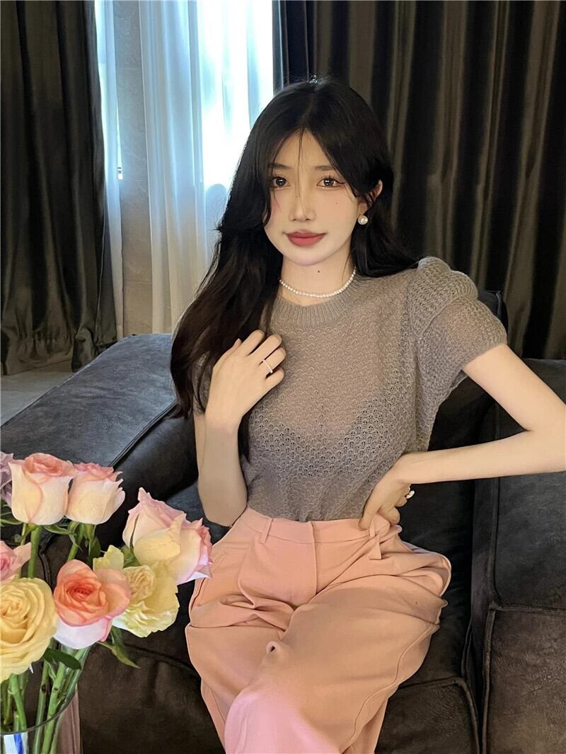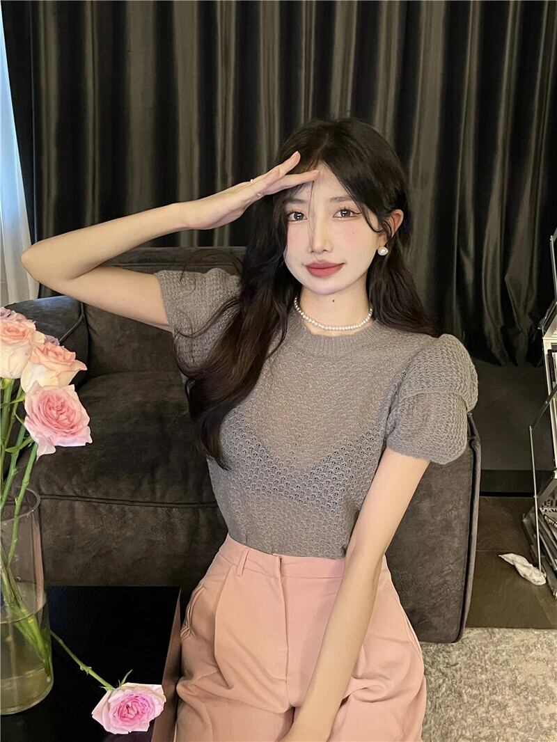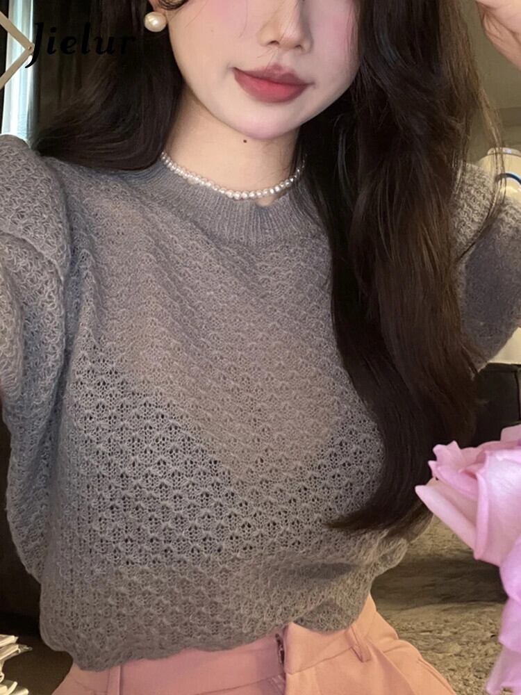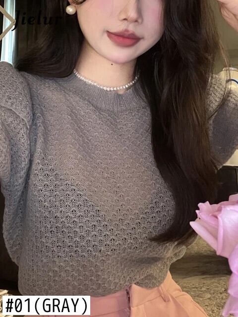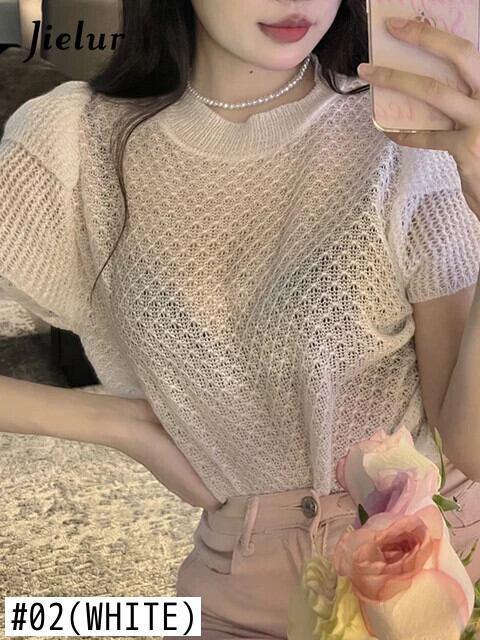 送料無料 Jielur ニットネット Tシャツ女性 2022 夏 O ネック無地レディ Tシャツホワイトグレーショートトップ サマー 夏物 Oネック ソリッドカラー AE12188787884638659518