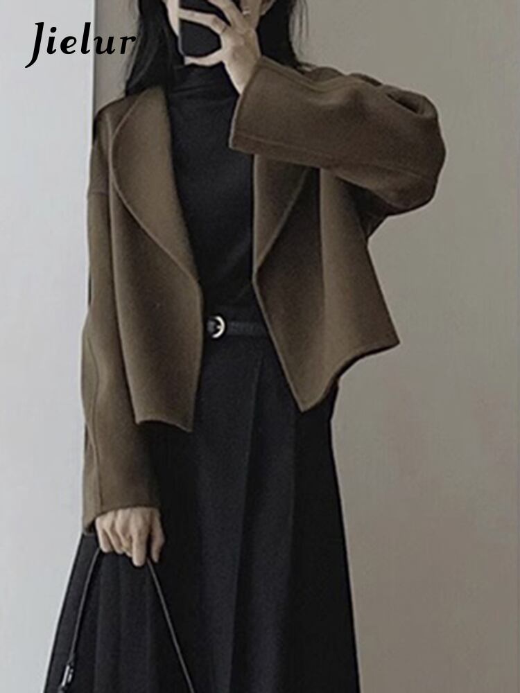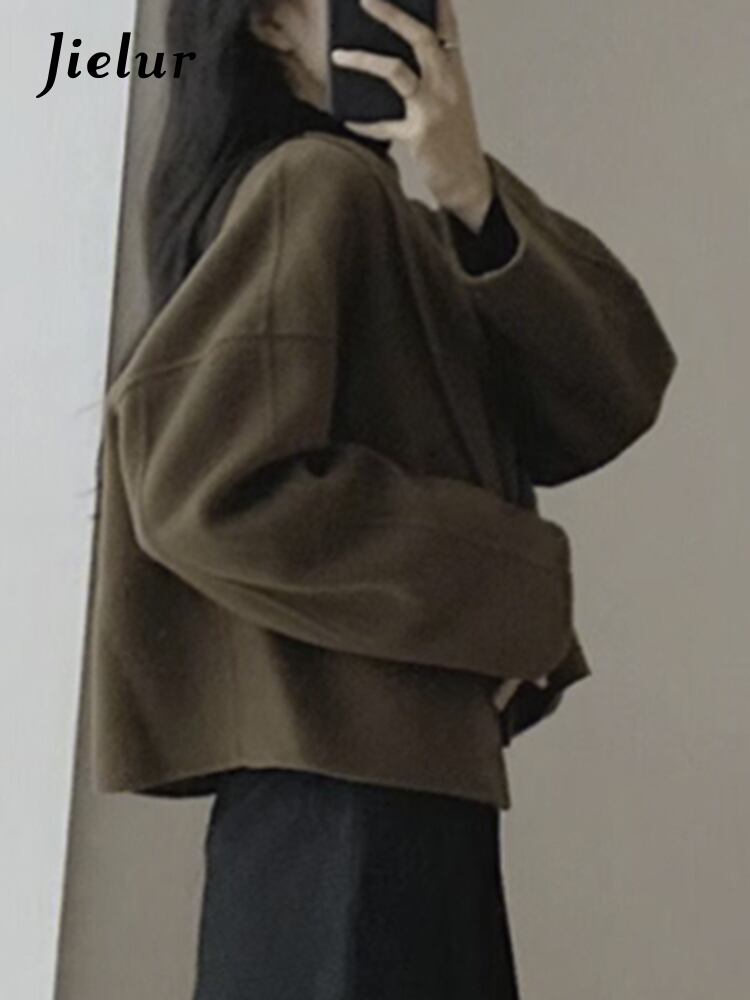 送料無料 Jielur フランス秋ソリッドカラーウール女性ルーズシックな女性ウールブラックコーヒーストリートブレンド オータム 秋物 AE12188787863619242210