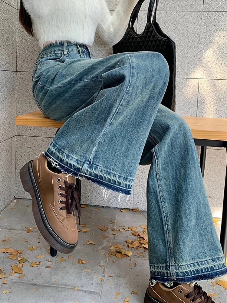 送料無料 Jielur ストレートワイドレッグパンツ女性スタイルヴィンテージスリムデニムパンツウエストだぶだぶのジーンズ春 スプリング 春物 ワイドパンツ ビンテージ AE12188787879445529838