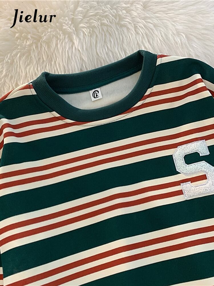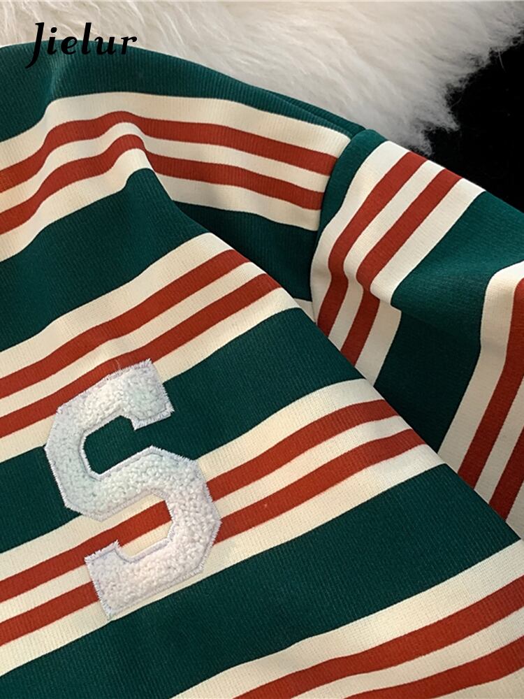 送料無料 Jielur 秋ルーズスリムベーシック女性パーカーコントラストカラーストライプパーカー INS ストリートシックトップ女性 オータム 秋物 AE12188787818642282651