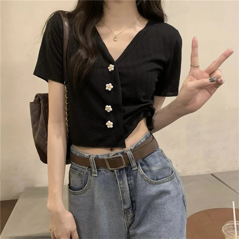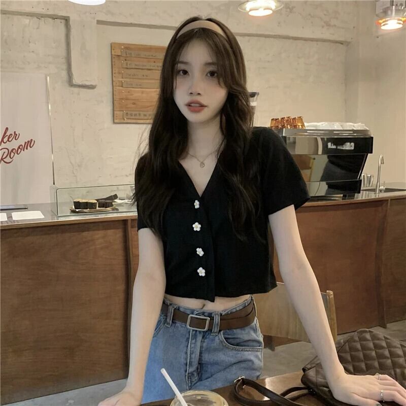 送料無料 Jielur 夏セクシーな女性の Tシャツスリム甘い Tシャツ女性アプリコット黒ルーズトップ ブラック 大人ガーリー スウィート キュート カジュアル サマー 夏物 AE12188787889870969826
