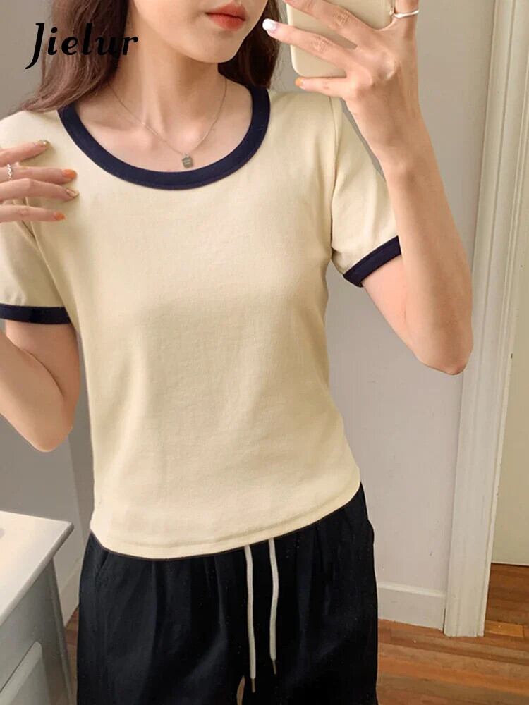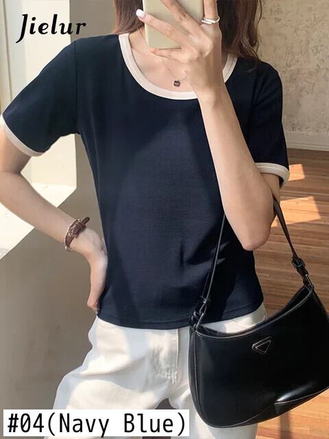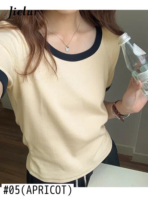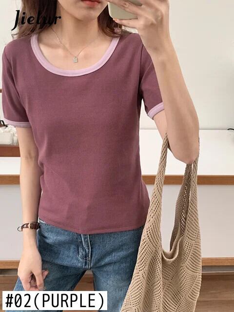 送料無料 Jielur 夏ルーズスリム女性 Tシャツスペルカラー O ネックトップホワイトネイビーアプリコットオレンジパープル Tシャツ サマー 夏物 Oネック AE12188787824432426298