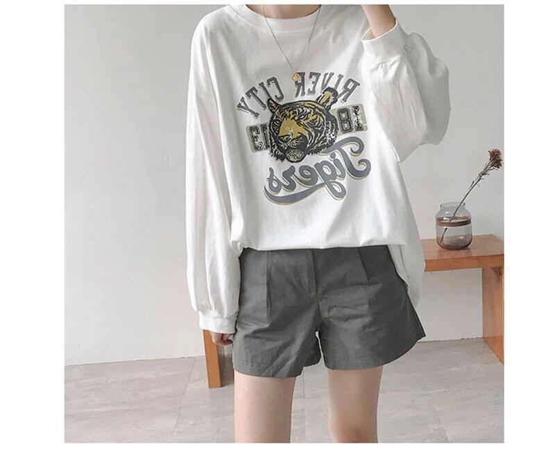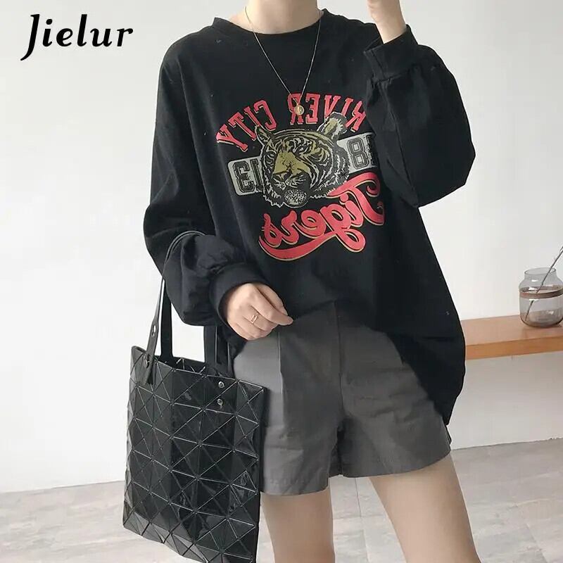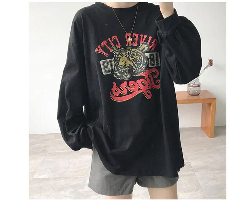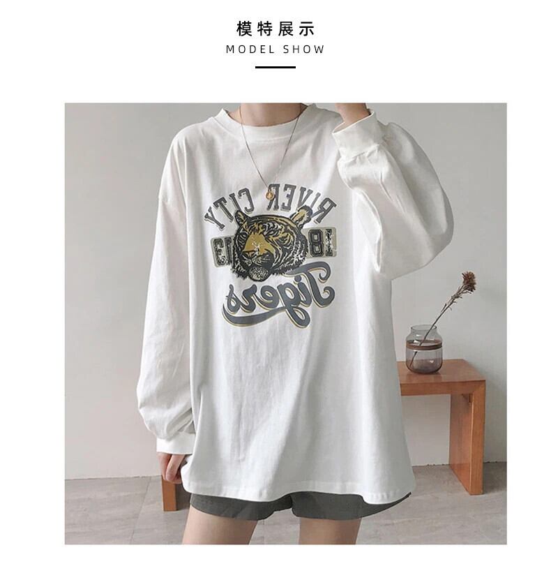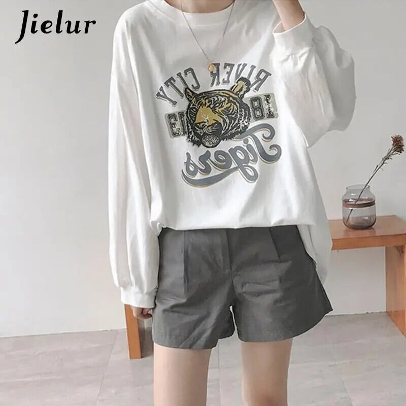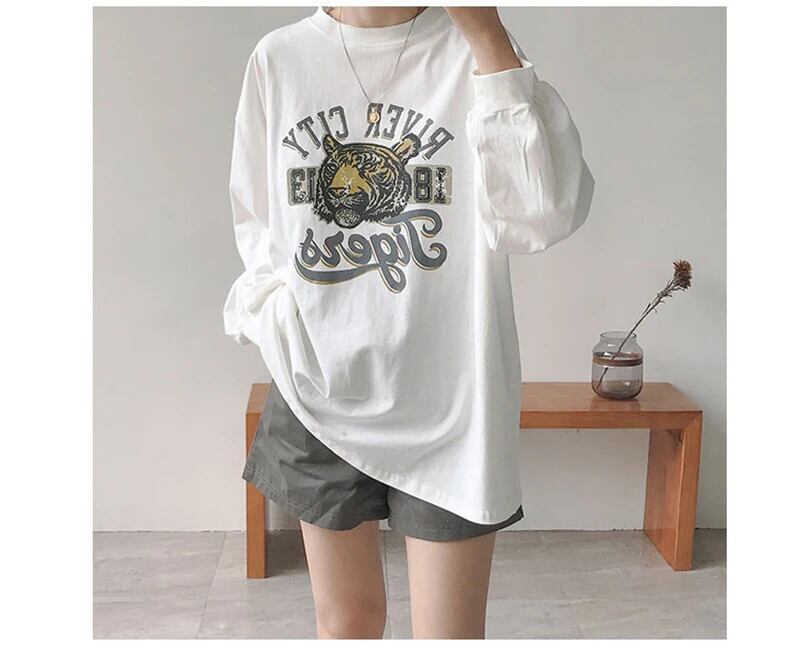 送料無料 Jielur 原宿長袖おかしい漫画女性の Tシャツ秋の女性 M-XXL サイズ Tシャツ白ロングストリート Tシャツ ホワイト かわいい オータム 秋物 AE1218878788013896653