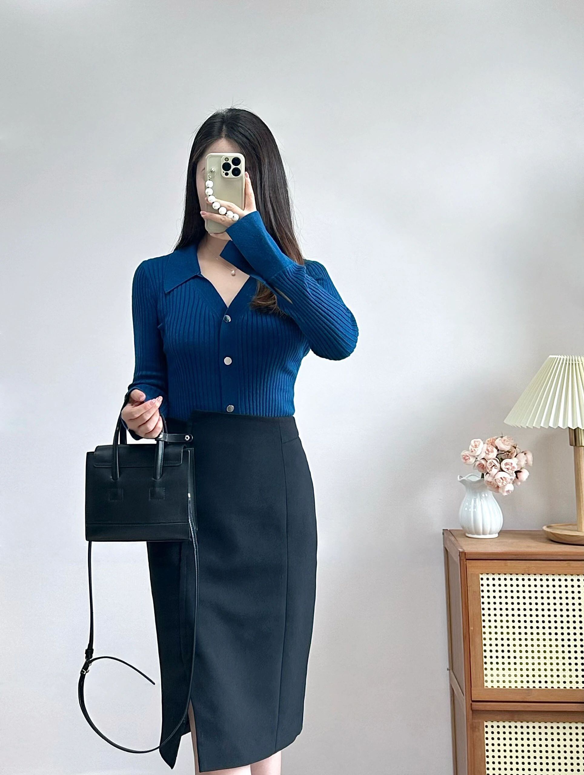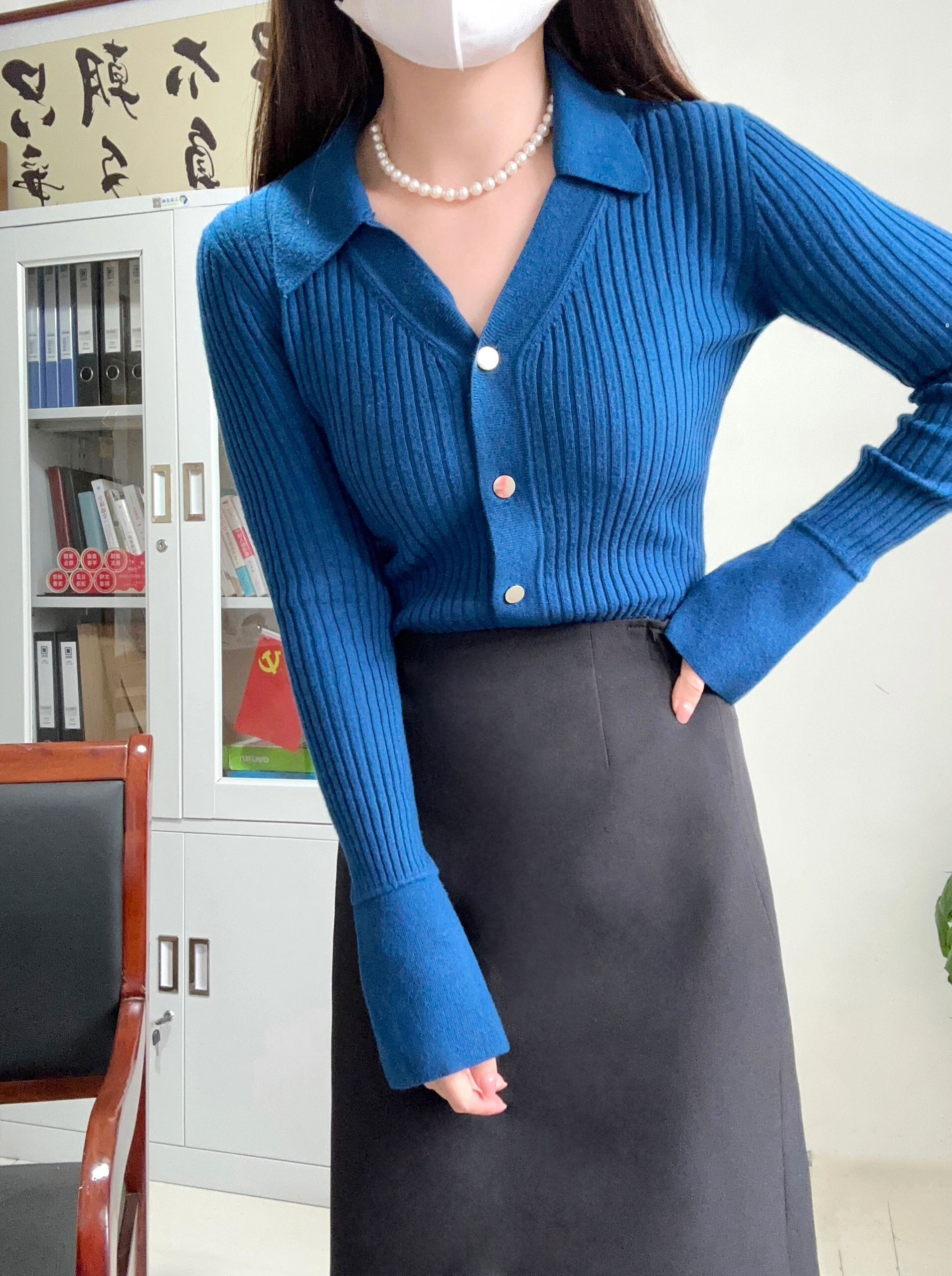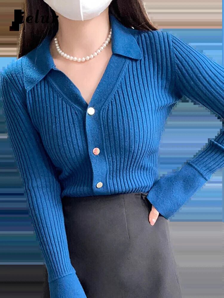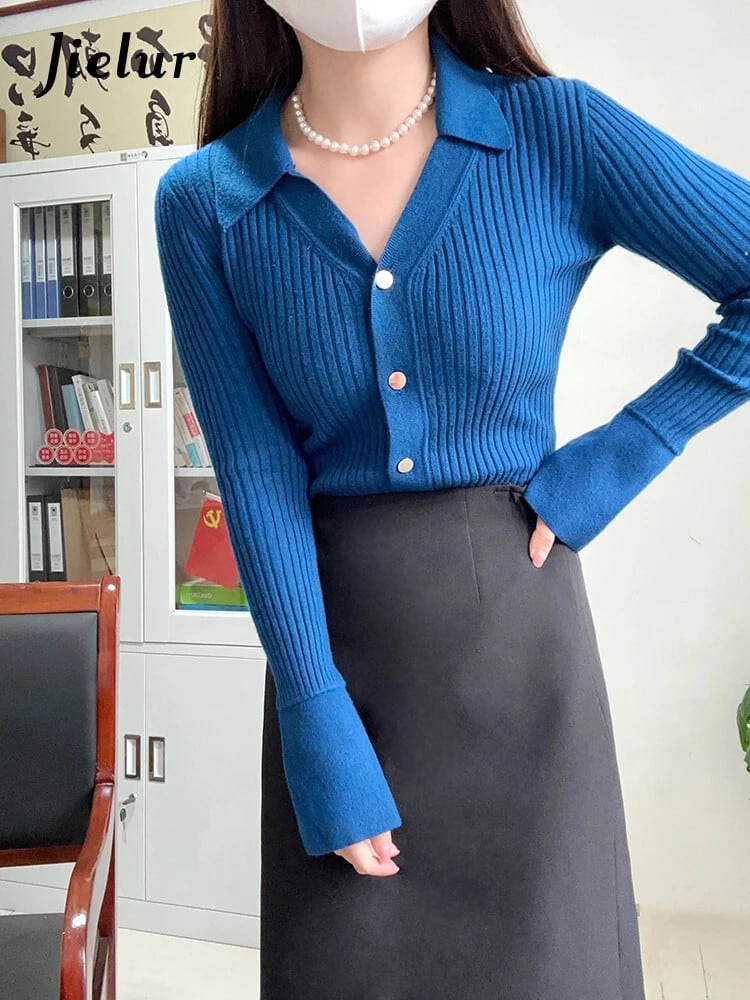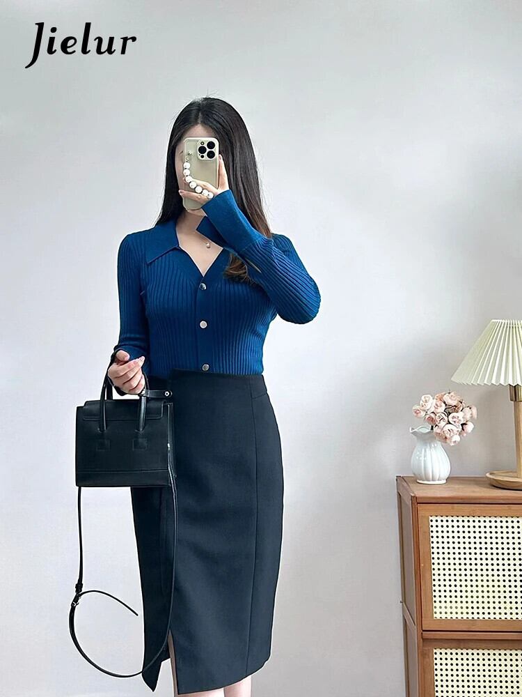 送料無料 Jielur 春フランスの女性カーディガンシンプルなベーシックスリムソリッドカラーの女性カーディガンブルーブラックニットセーター スプリング 春物 AE12188787885756010577