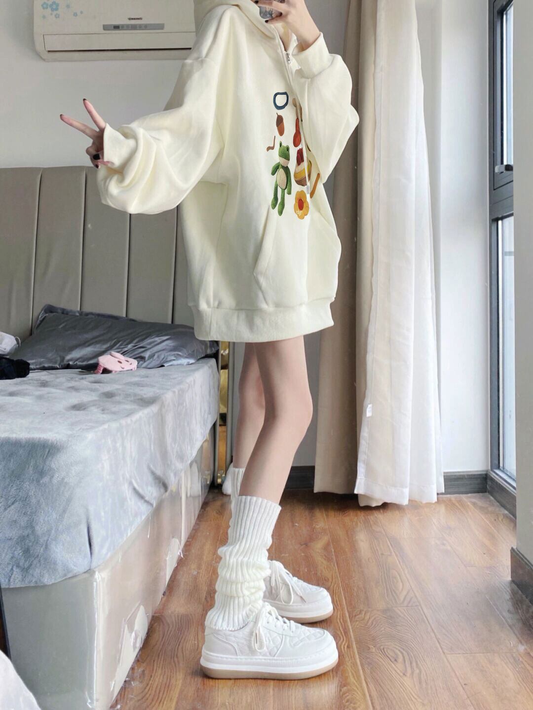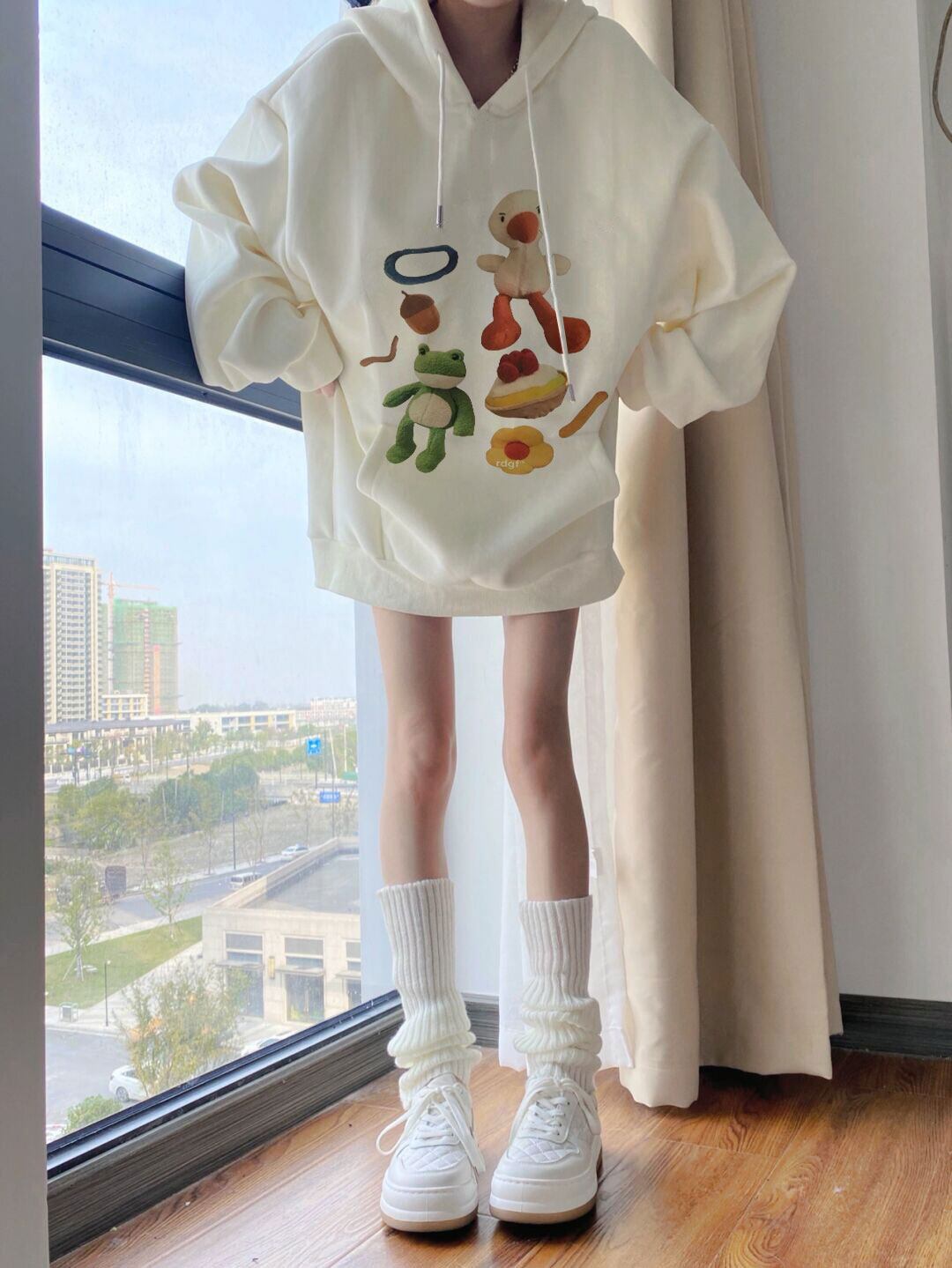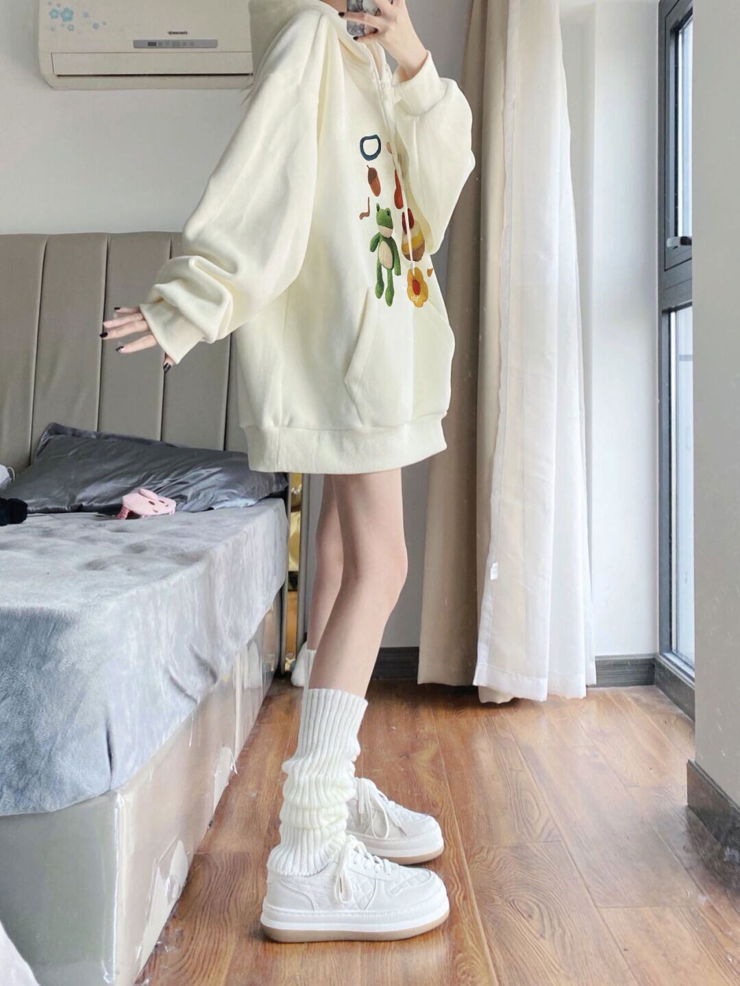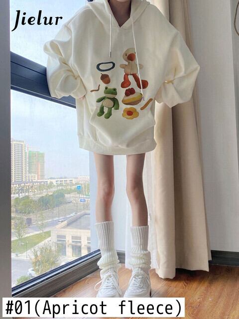 送料無料 Jielur 秋の漫画プリントスウェットフード付きトップ Kpop ルーズフリースパーカー女性プルオーバーアプリコット M-XXL シャツ オータム 秋物 AE12188787848602628953