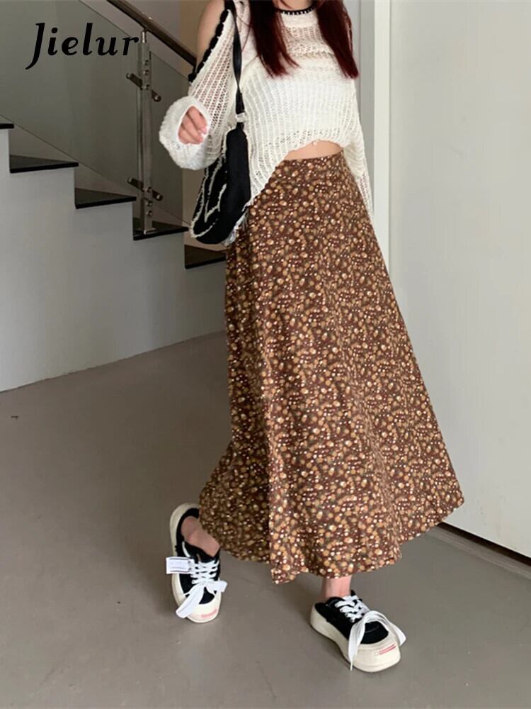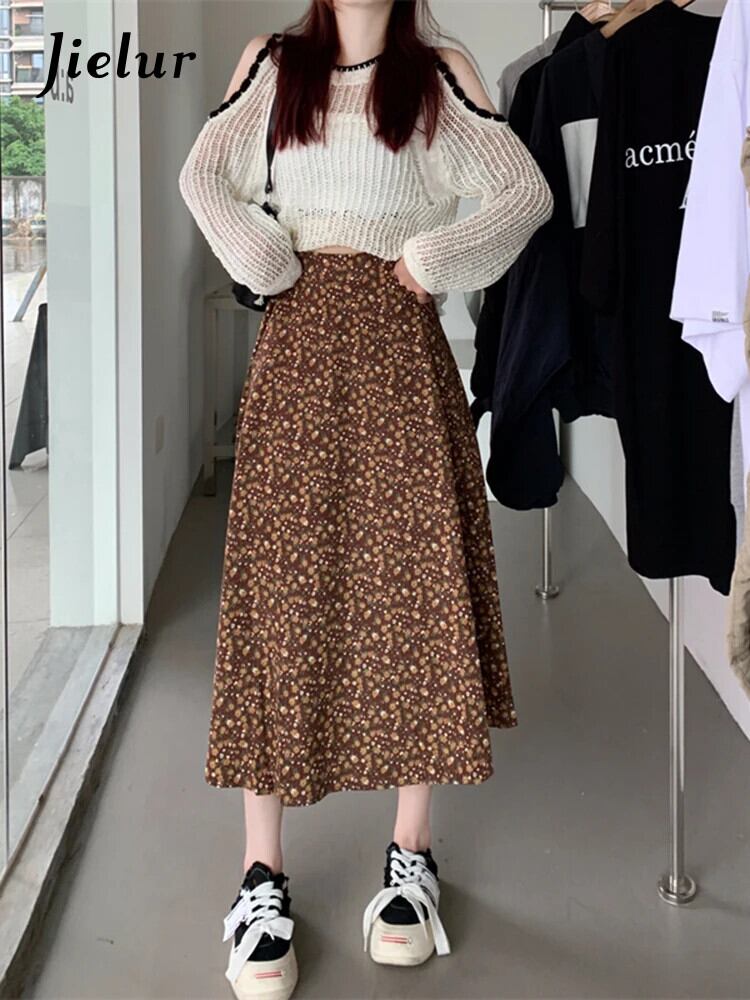 送料無料 Jielur 夏スリムルーズ女性のスカートインミディスカートベーシックシンプルなウエスト A ラインスカート女性 サマー 夏物 Aライン AE12188787867458627203