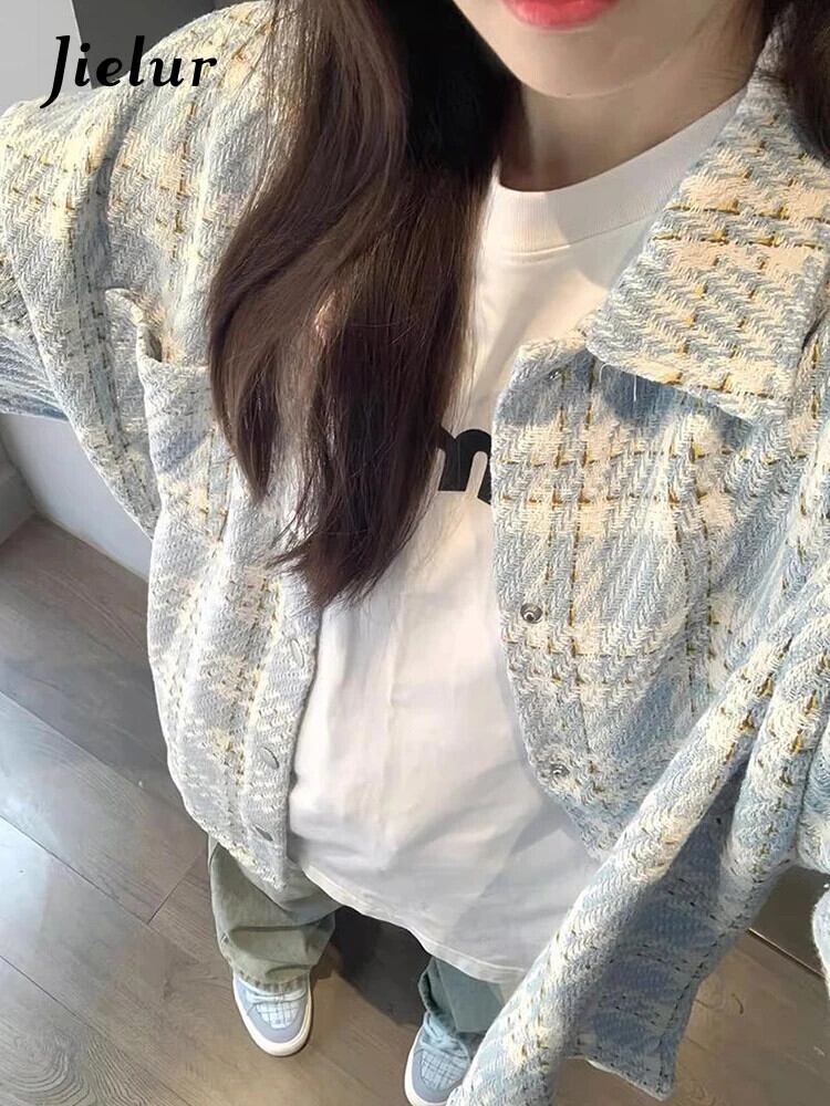 送料無料 Jielur 春インルース女性シャツブルーストリート長袖シャツ女性のベーシックシンプルなスリム Chicly トップ ロング スプリング 春物 AE12188787838096237843