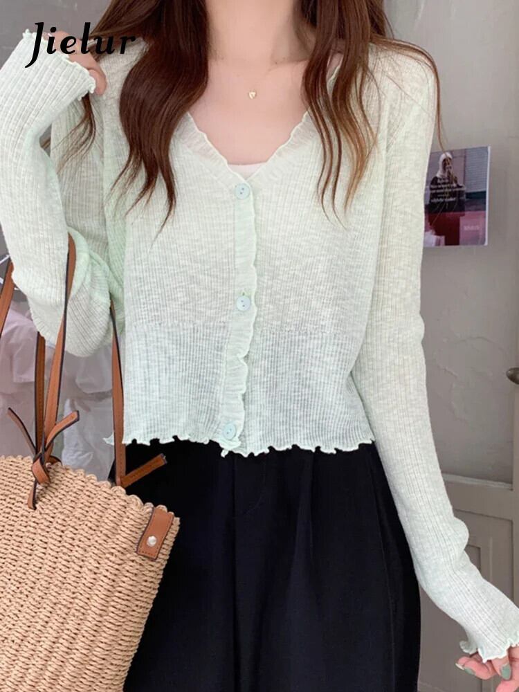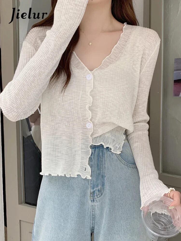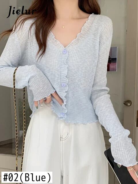 送料無料 Jielur 夏固体女性シャツ甘いニットシャツ女性黒青アプリコットシンプルな長袖トップ ロング ブルー ブラック 大人ガーリー スウィート キュート カジュアル サマー 夏物 ソリッドカラー AE12188787876861747721