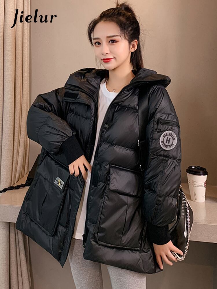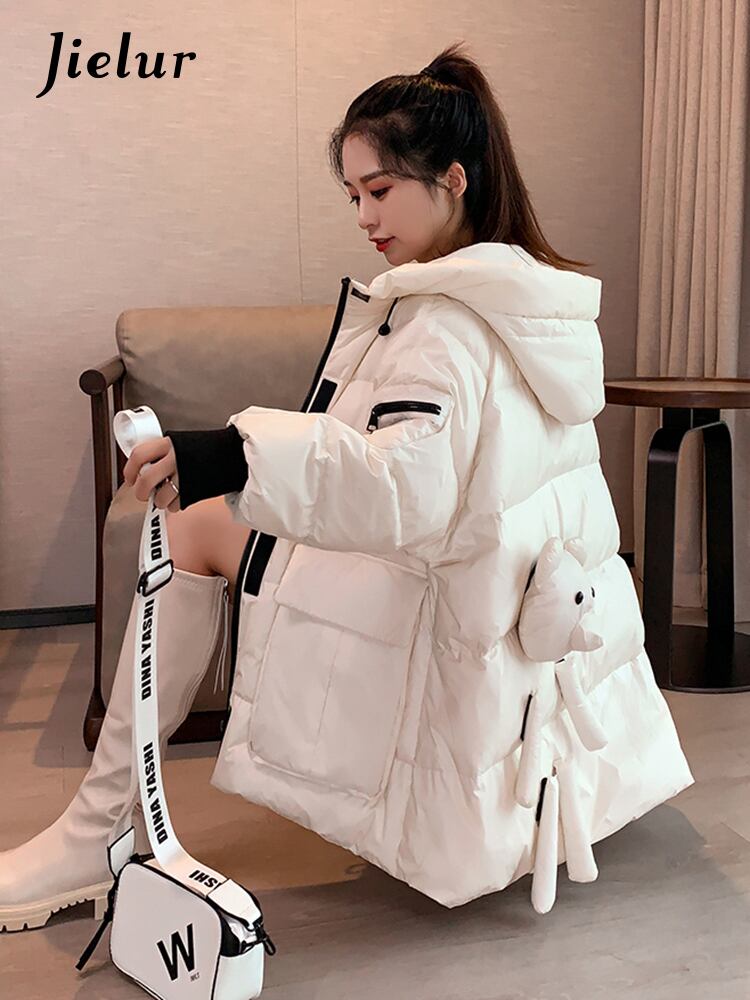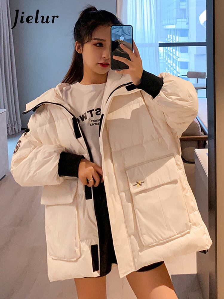 送料無料 Jielur 綿パッド入りジャケット女性の冬服ルース無地スタンドカラー暖かいかわいい黒、白のジャケット ホワイト ブラック コットン 大人ガーリー スウィート キュート カジュアル ウィンター 冬物 ソリッドカラー AE12188787814306739761