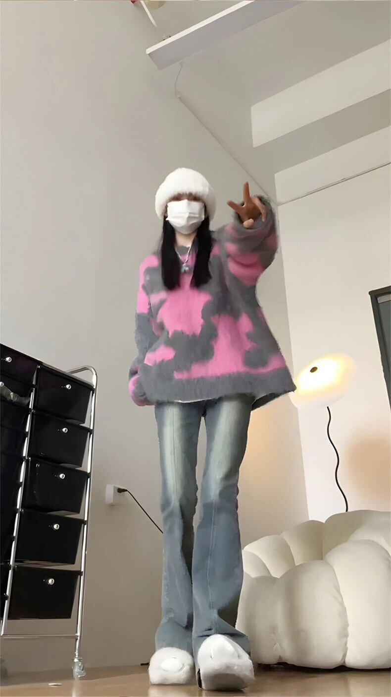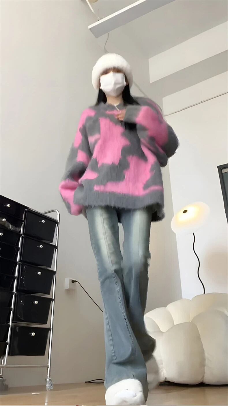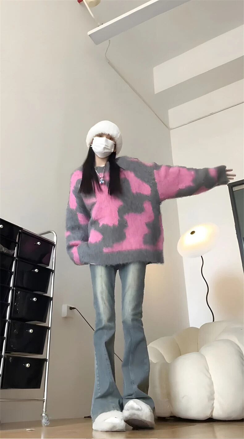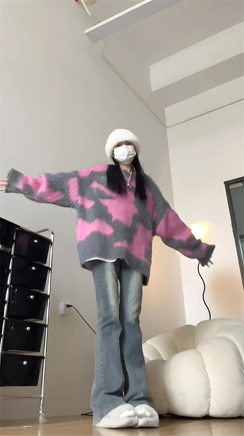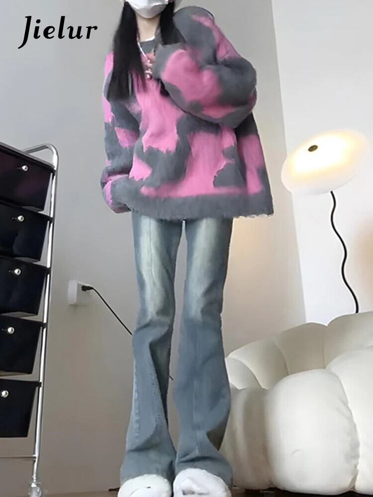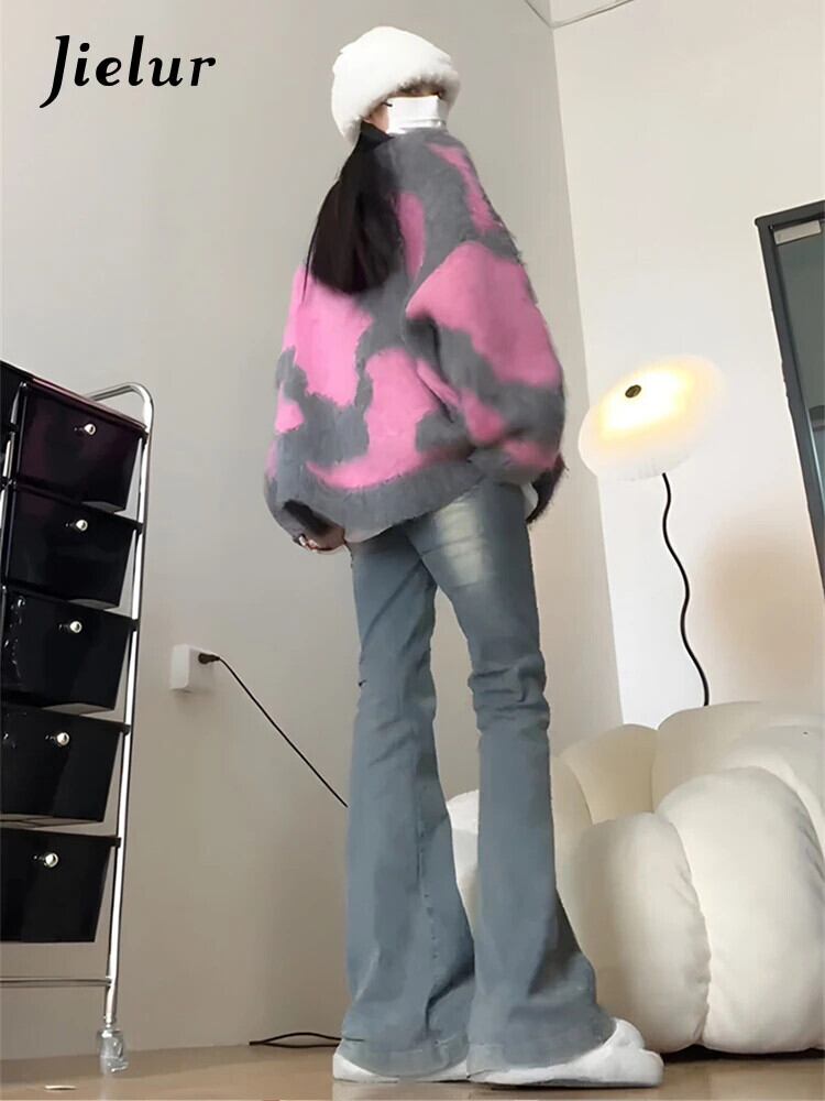 送料無料 Jielur 秋のコントラストカラーの女性プルオーバールーズストリートプルオーバー女性スリムシックニットセーター オータム 秋物 AE12188787884822873667