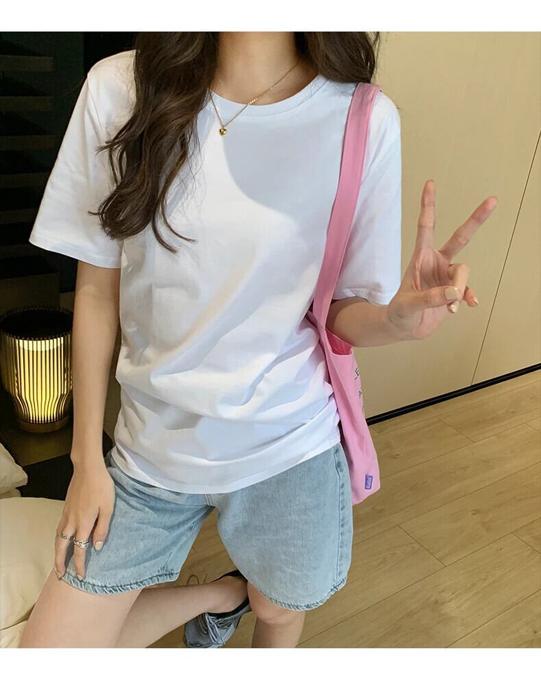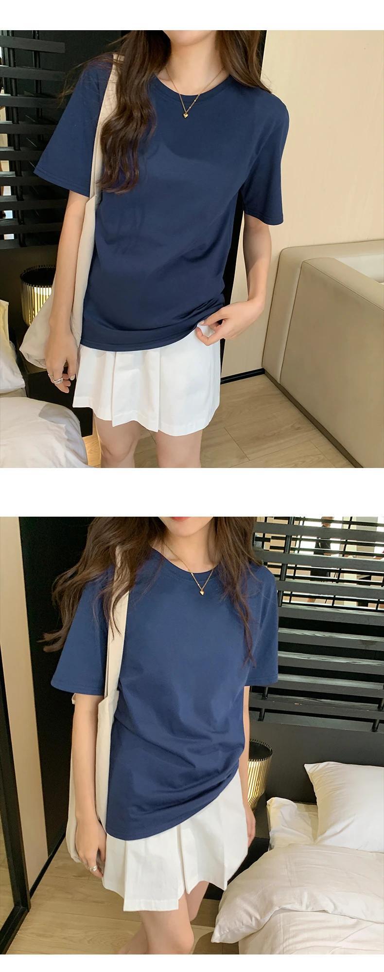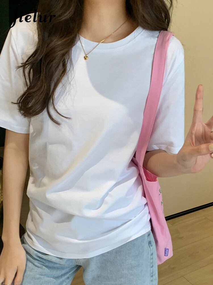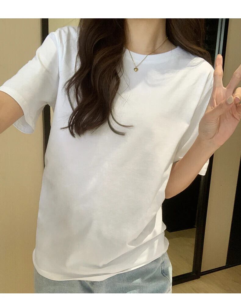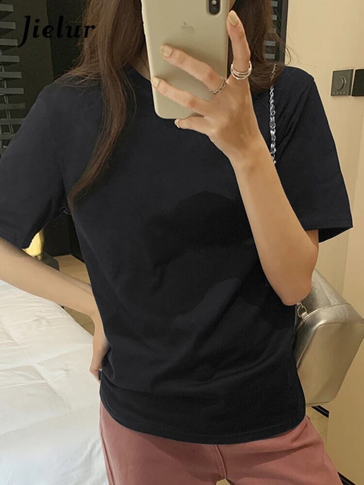 送料無料 Jielur 夏ソリッドカラースリムレディース Tシャツスタイル Tシャツ女性ホワイトネイビーブラックシンプルベーシックトップ サマー 夏物 AE12188787842161189459