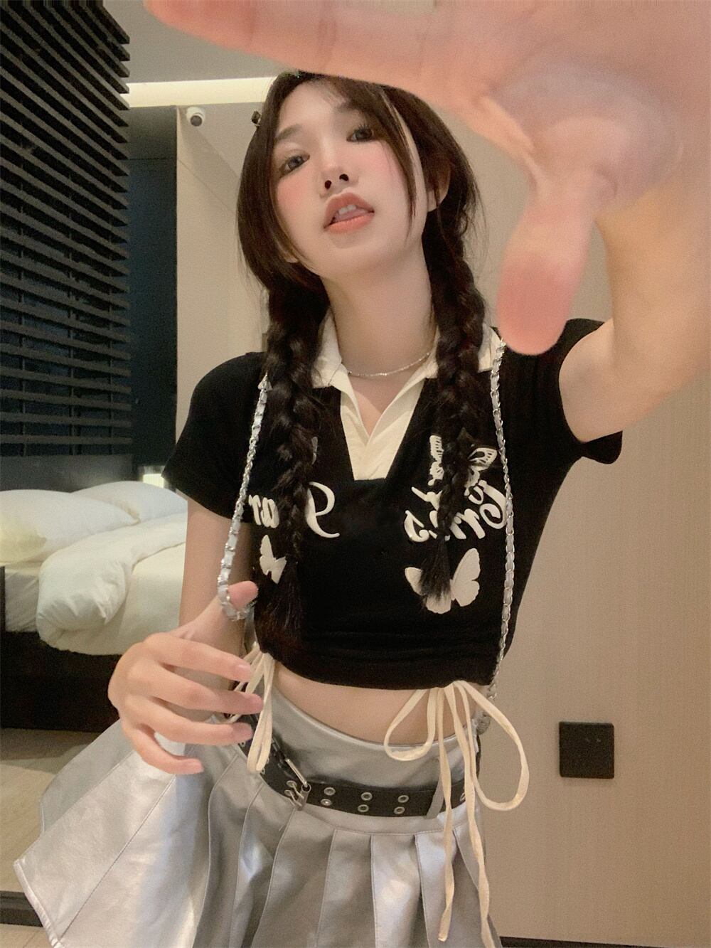 送料無料 Jielur 夏 Y2K ルーズ Tシャツ女性コントラストカラー甘い女性の Tシャツブラックコーヒーストリートトップ 大人ガーリー スウィート キュート カジュアル サマー 夏物 AE12188787836792701063