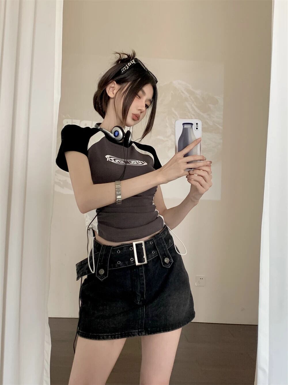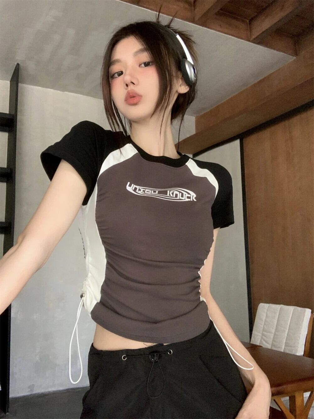 送料無料 Jielur 夏アメリカンスリム女性の Tシャツ巾着セクシーな若いベーシック Tシャツ女性グレーストリートトップ サマー 夏物 AE12188787893692652248