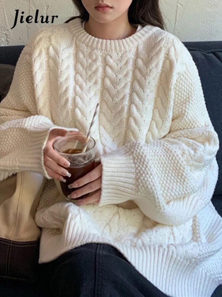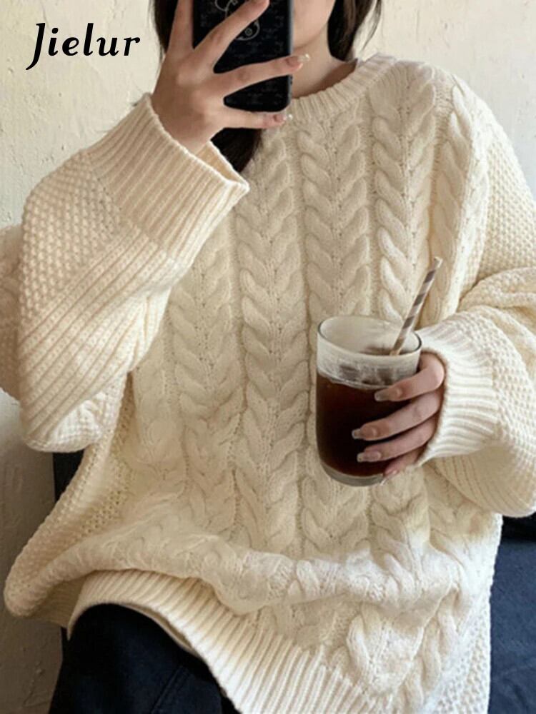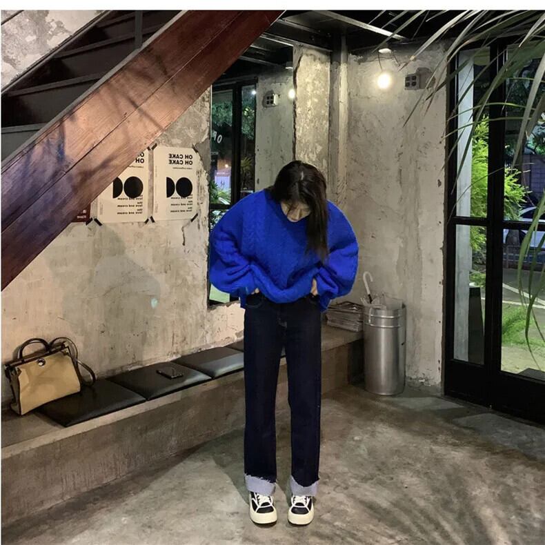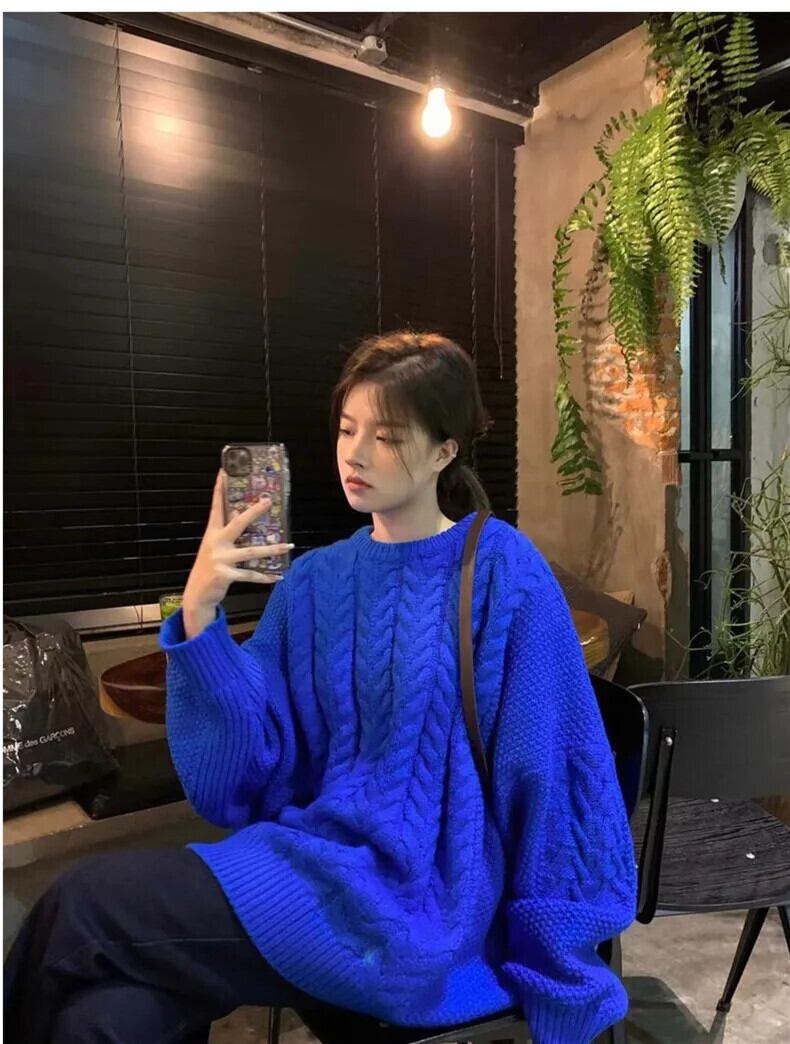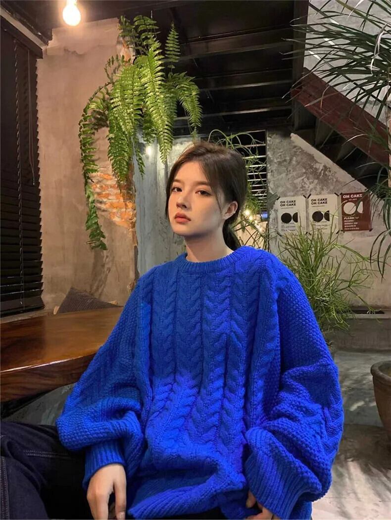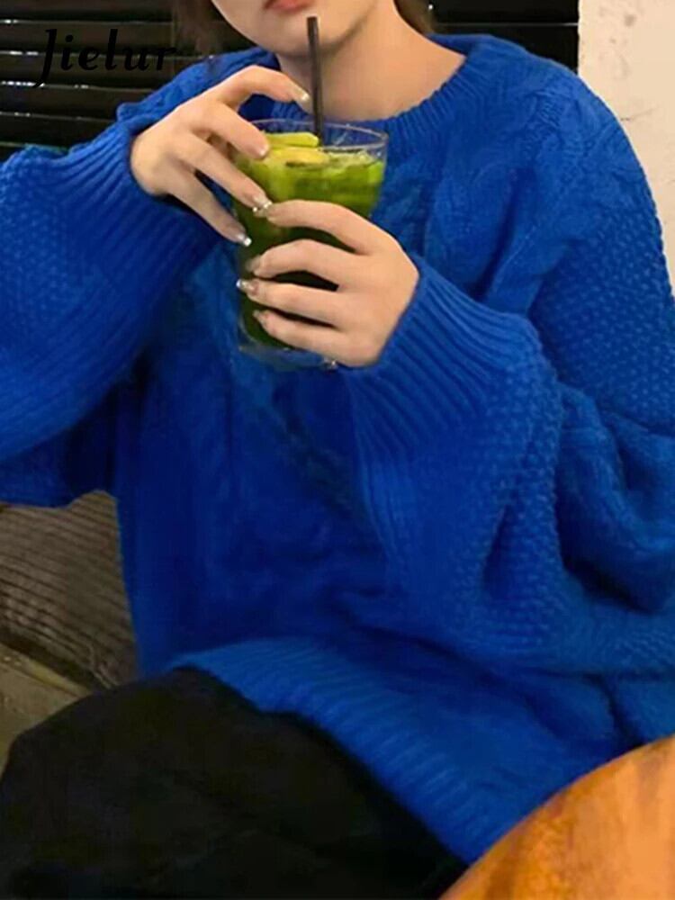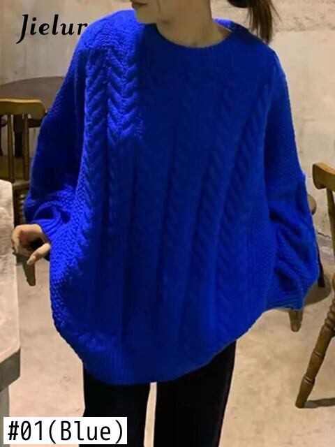 送料無料 Jielur 秋ソリッドカラースリムプルオーバー女性ルーズストリートシックプルオーバーブルーホワイトトップ女性 オータム 秋物 AE1218878787699395898