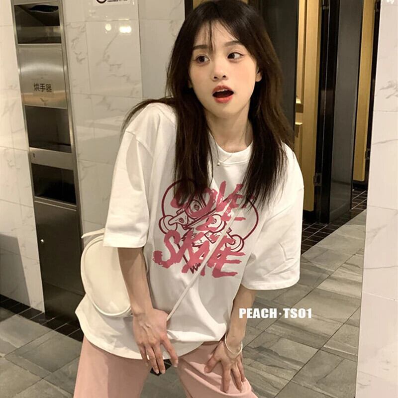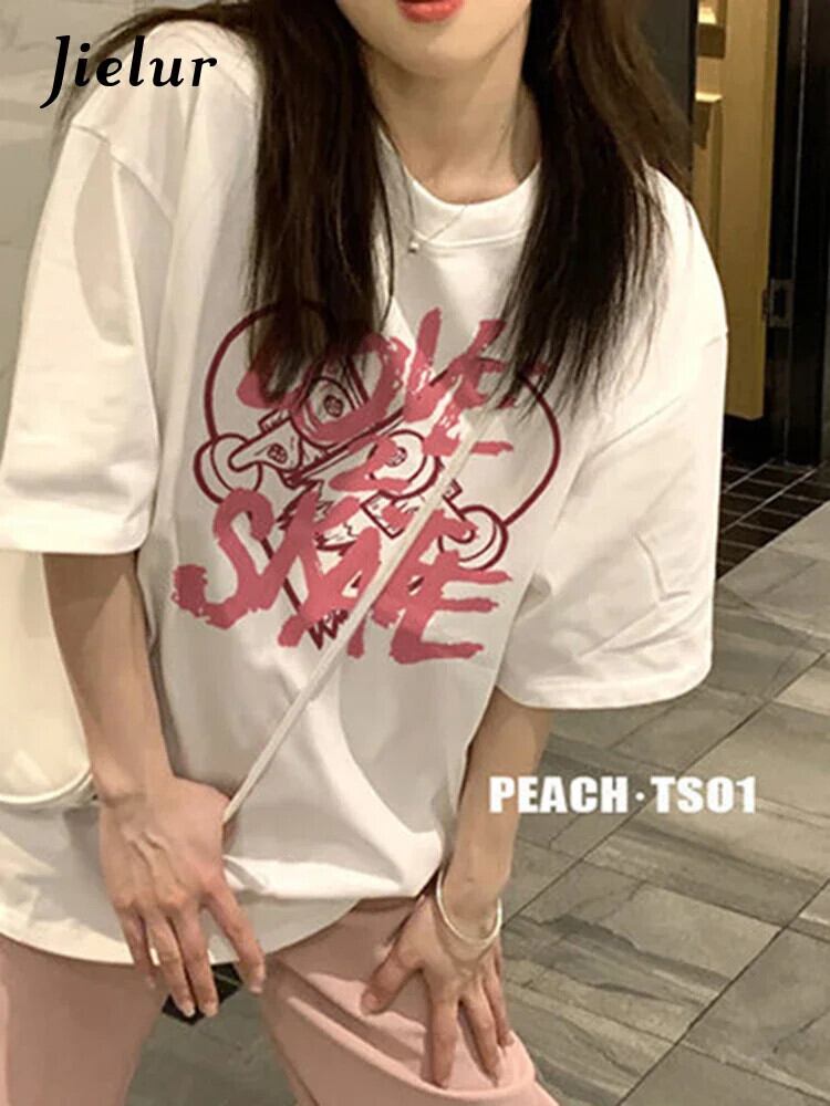 送料無料 Jielur 夏ストリート女性の Tシャツスリムレジャールーズスウィート Tシャツ女性白黒シックな O ネックトップ ホワイト ブラック 大人ガーリー キュート カジュアル サマー 夏物 Oネック AE12188787826394109701